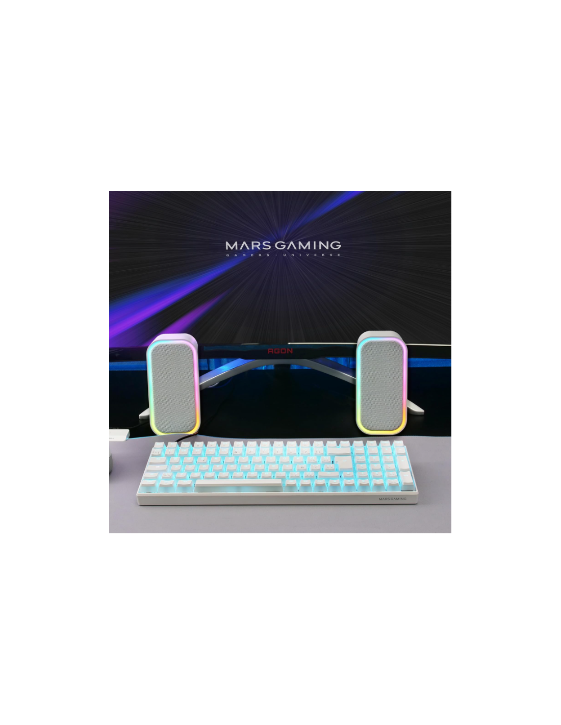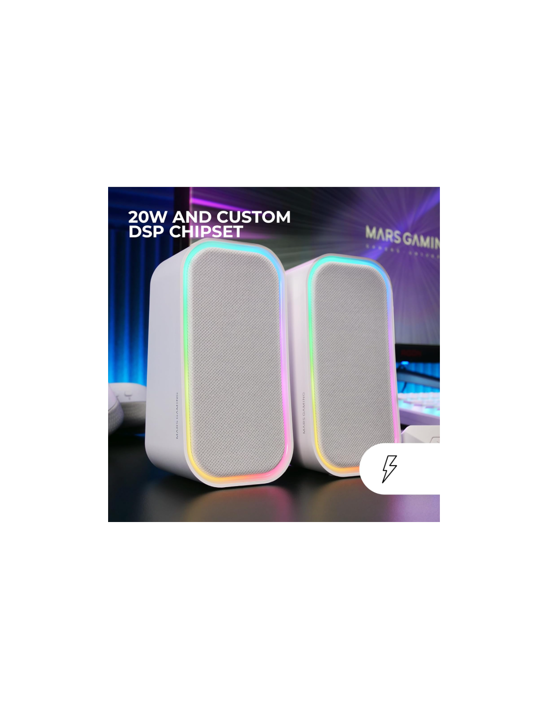 - BLUETOOTH 5.3 Y AUX-IN: El sistema de altavoces RGB MS-OM equipa la última tecnología Bluetooth 5.3 y un cable AUX-IN, ofreciendo una libertad y flexibilidad absolutas para que conectes tus dispositivos de forma sencilla