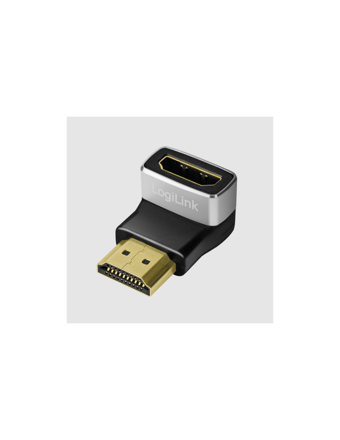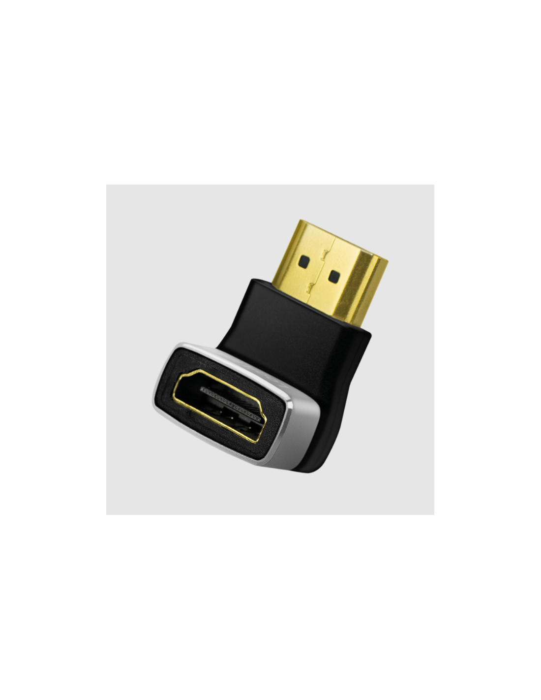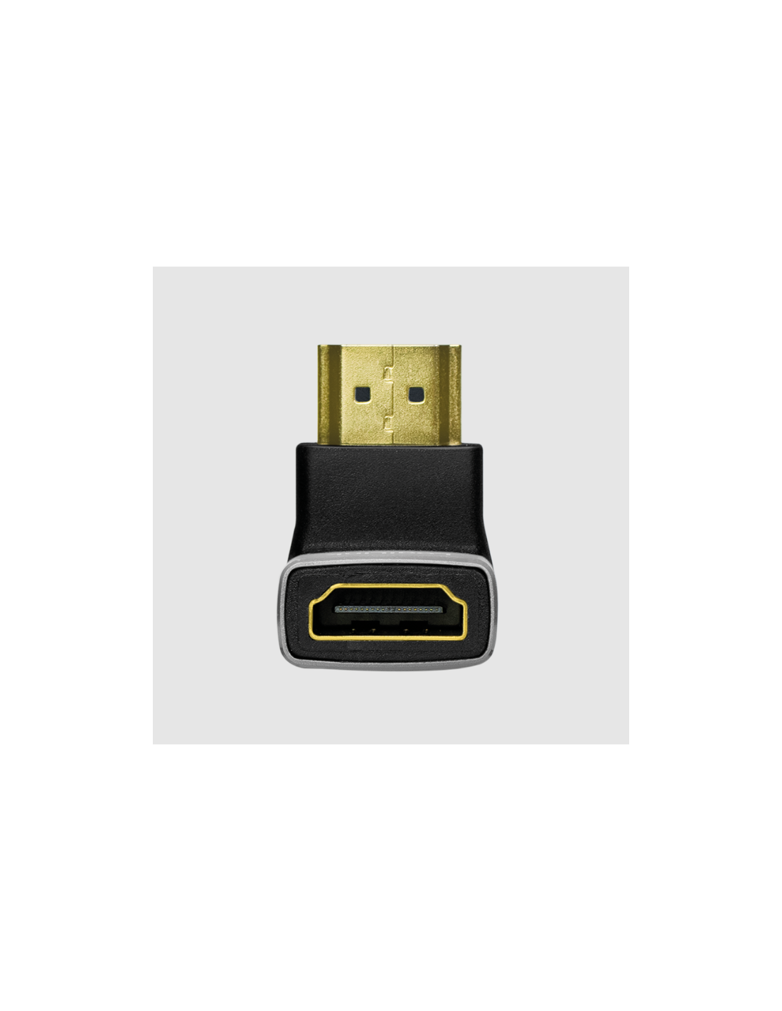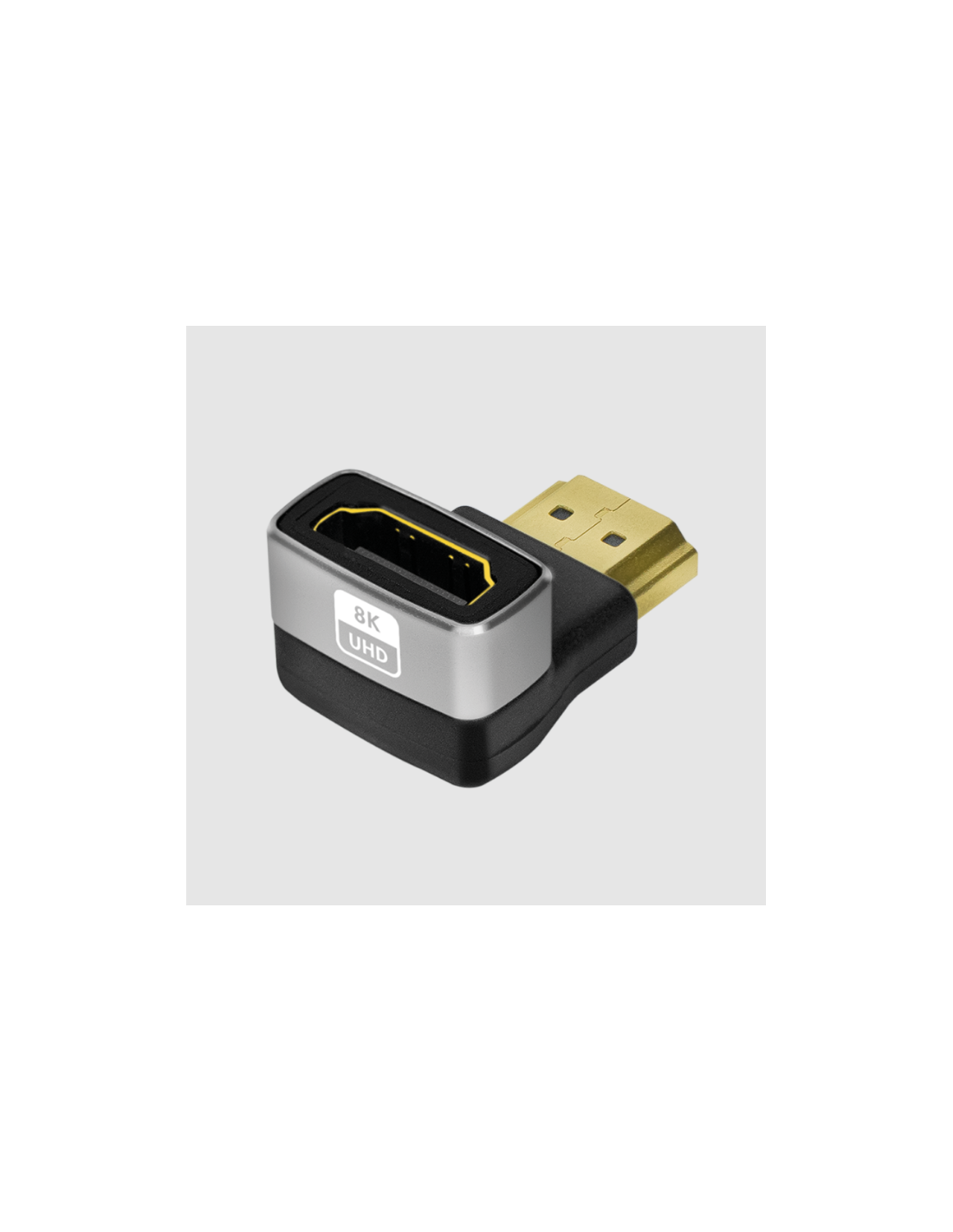 Adaptador HDMI con un conector de 90 grados. Die vergoldeten Kontakte sorgen für óptimo Verbindung. El adaptador compatible con el estándar HDMI 2.1 es compatible con formatos 480i, 480p, 720p, 1080i, 1080p y 4K.