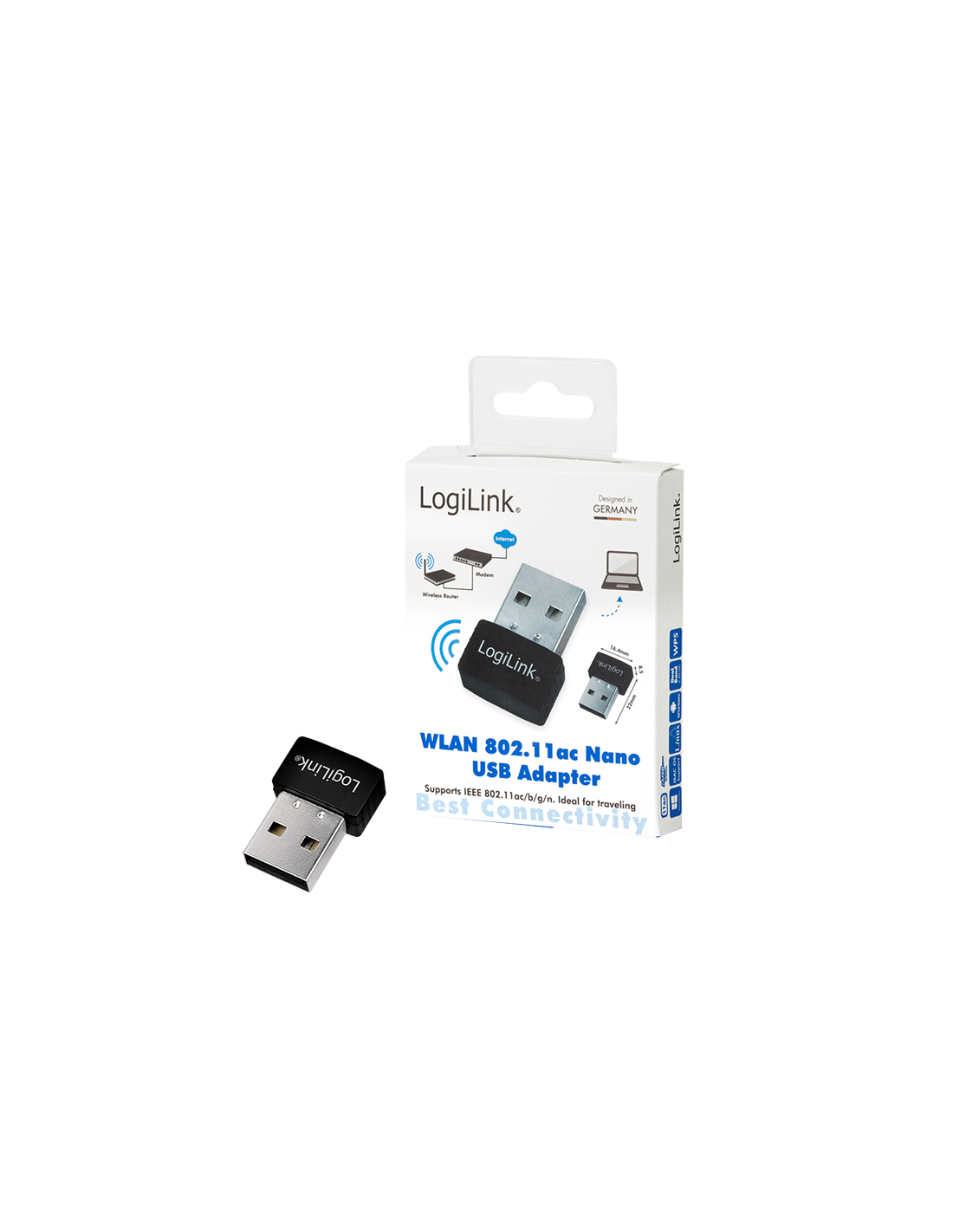 Información del producto "Adaptador de banda dual nano LAN inalámbrica, 802.11ac, USB 2.0, 600 Mbit/s" de LogiLink