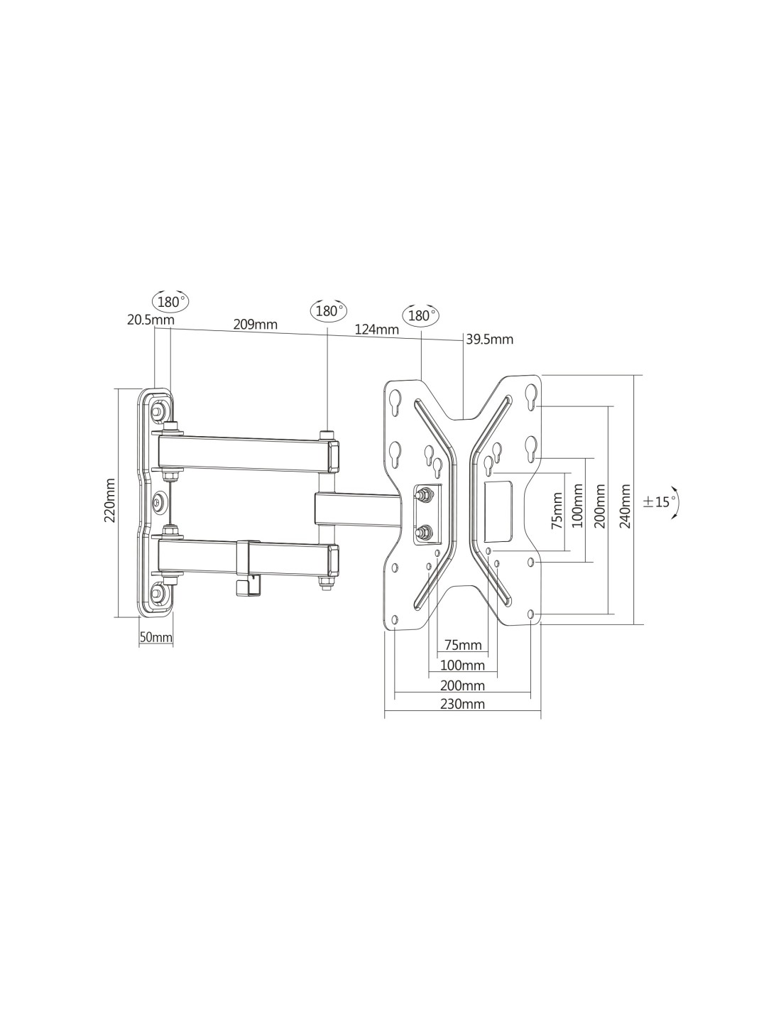 - Apto para distancias normalizadas VESA 75 x 75, 100 x 100, 200 x 100 y 200 x 200 mm