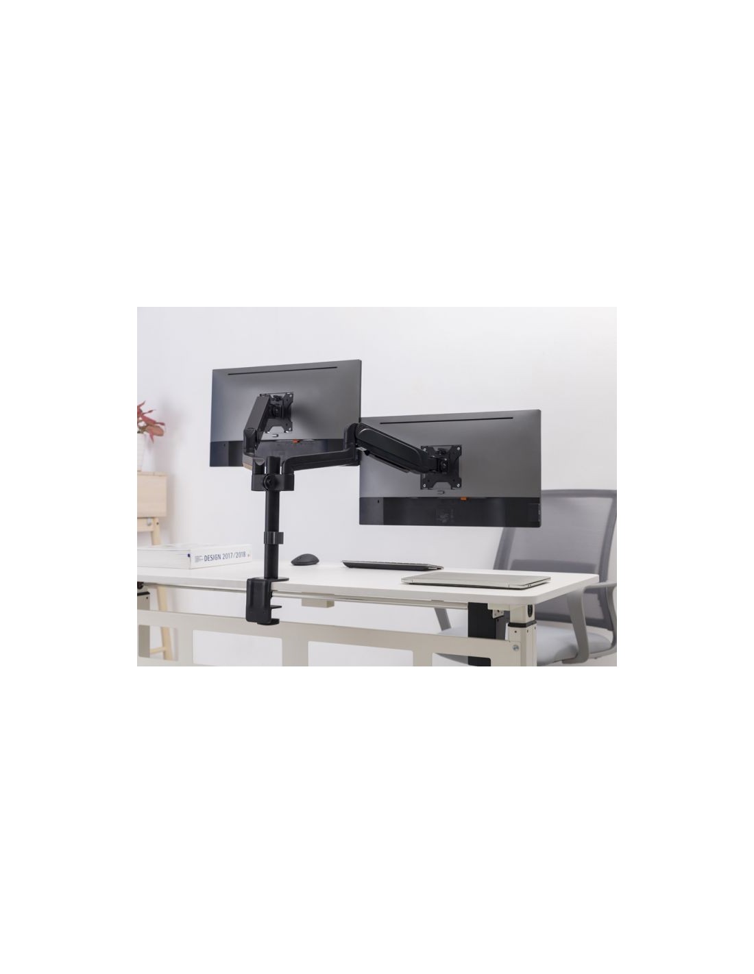 La estructura de resorte de gas proporciona un movimiento suave y fluido, lo que promueve transiciones rápidas entre las posiciones sentada y de pie. Este soporte no solo maximiza el espacio del escritorio, sino que también ayuda a reducir la tensión en el cuello, los ojos y la espalda. Es una excelente opción para oficinas, estaciones de trabajo en el hogar y configuraciones creativas.