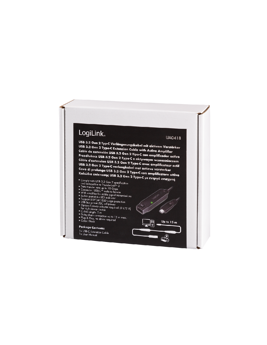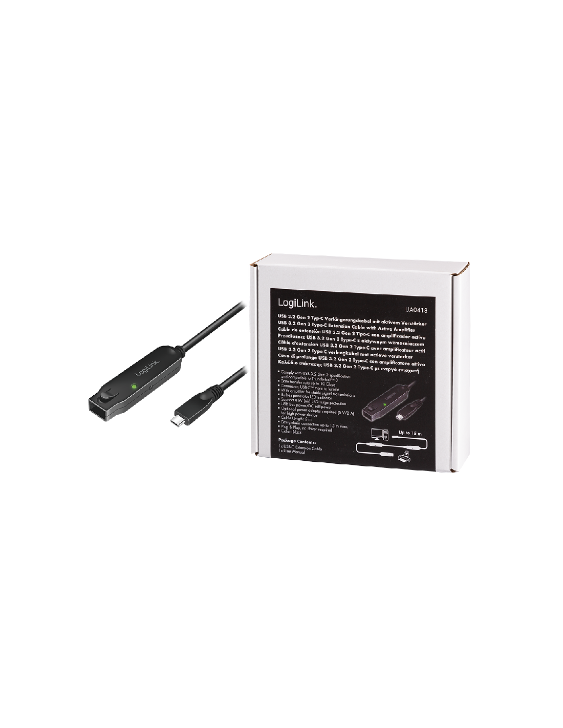14 días de devoluciónCable USB 3.2 Gen2, USB-C/M a USB-C/H, amplificador, negro, 5 m