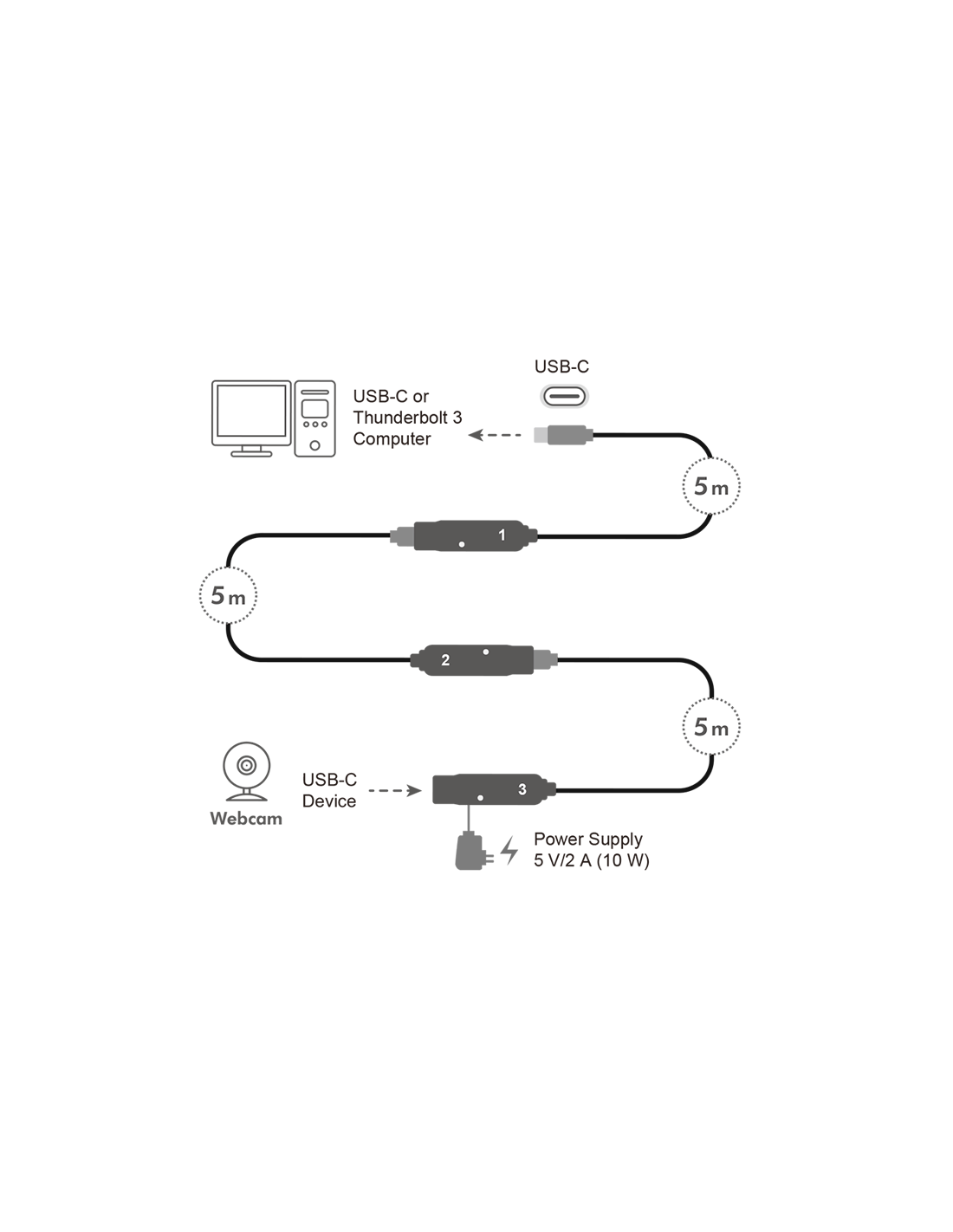 Cable USB-C/M a USB-C/H, amplificador, 5 m