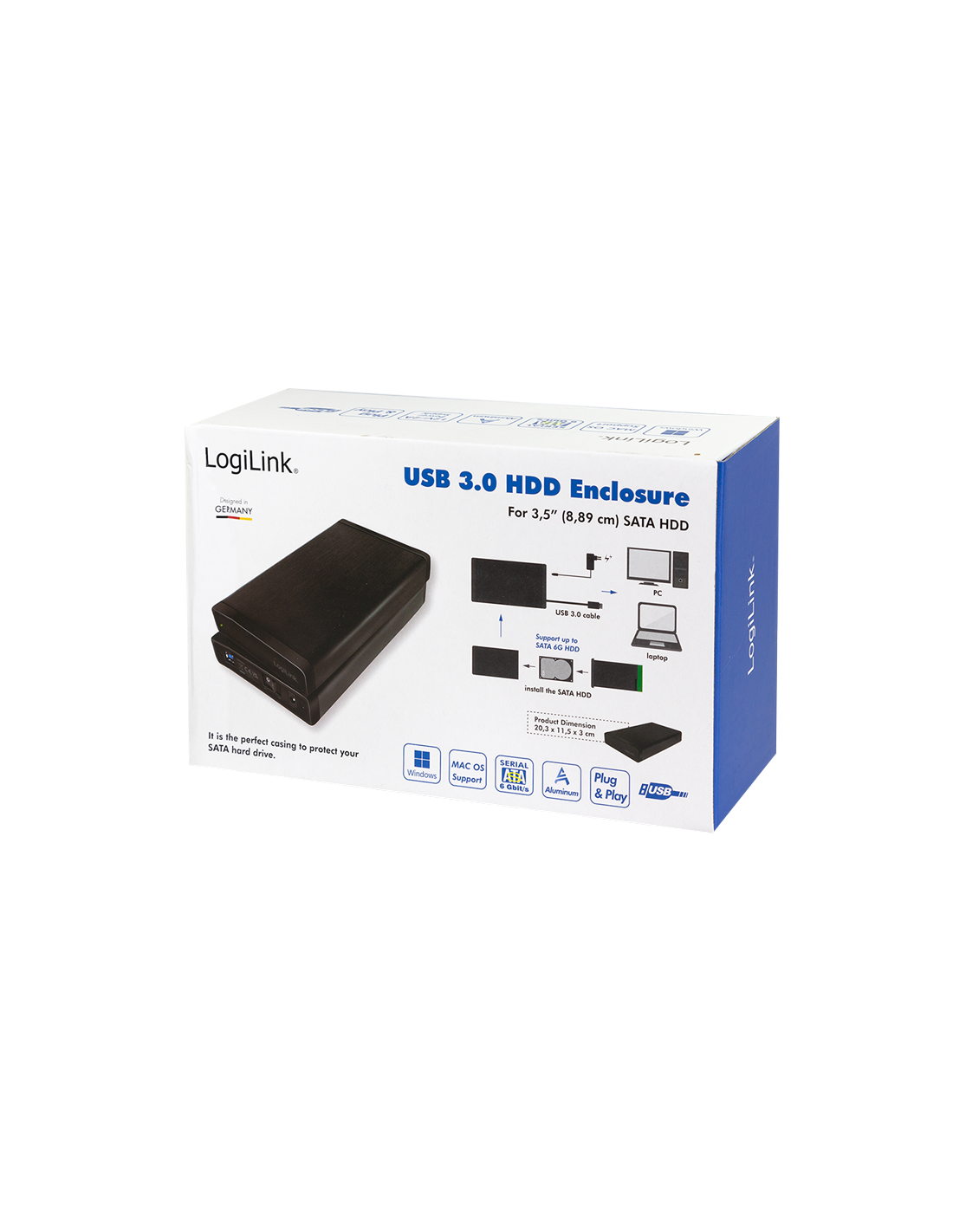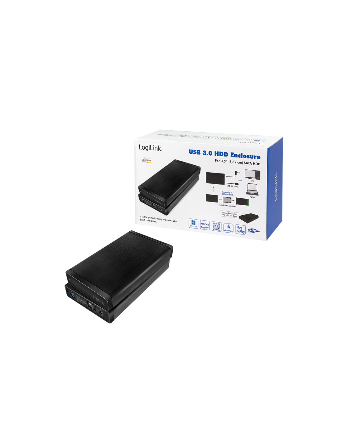 Información del producto "Carcasa para disco duro externo de 3,5", SATA, USB 3.0"