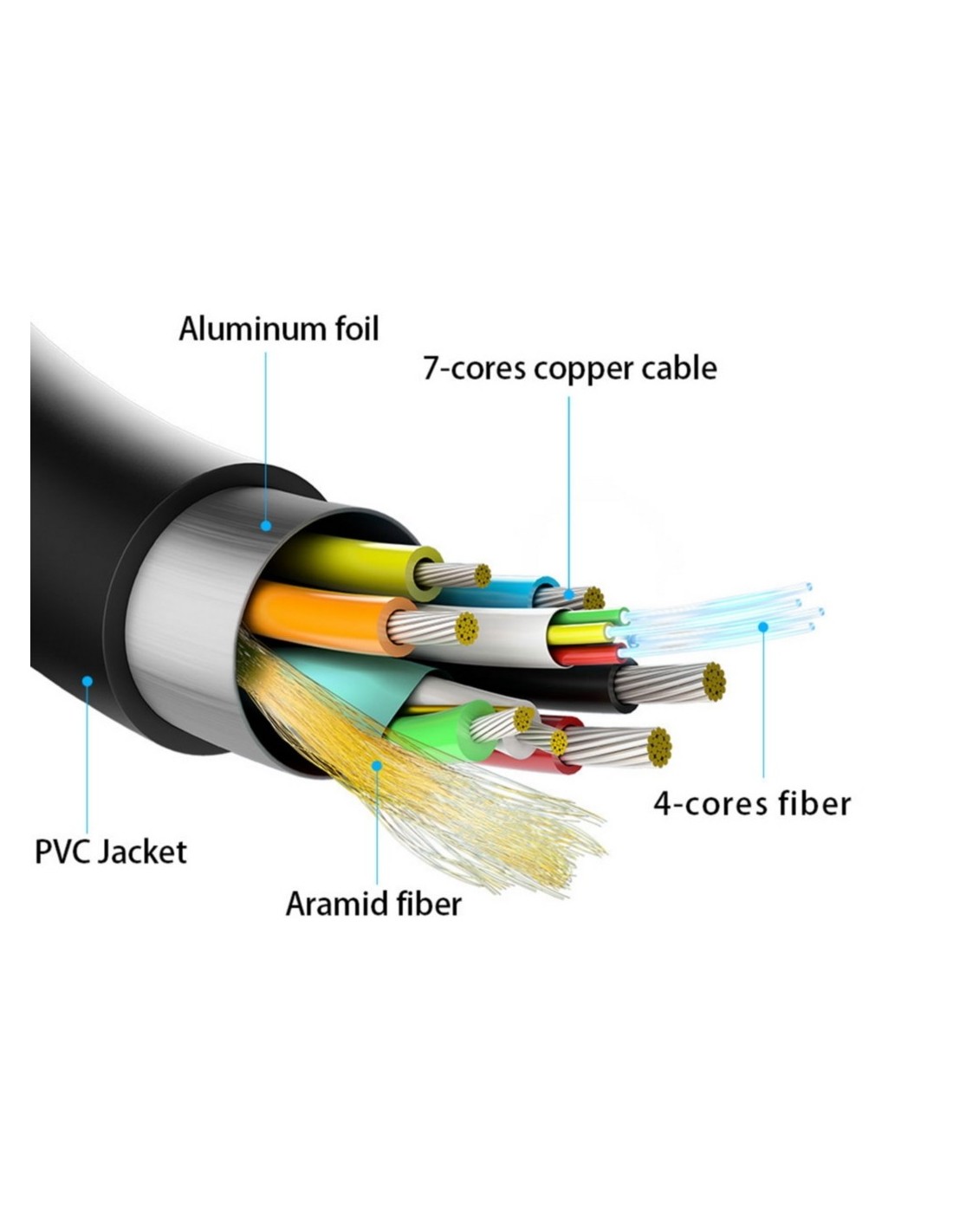Conectores de alta calidad blindados en oro de 24K. Múltiple apantallamiento para la máxima reducción de posibles interferencias. Fabricado con conductores de cobre (cobre OFC-Oxygen Free Copper- 99,99%) de alta calidad que garantiza la máxima calidad de transmisión.