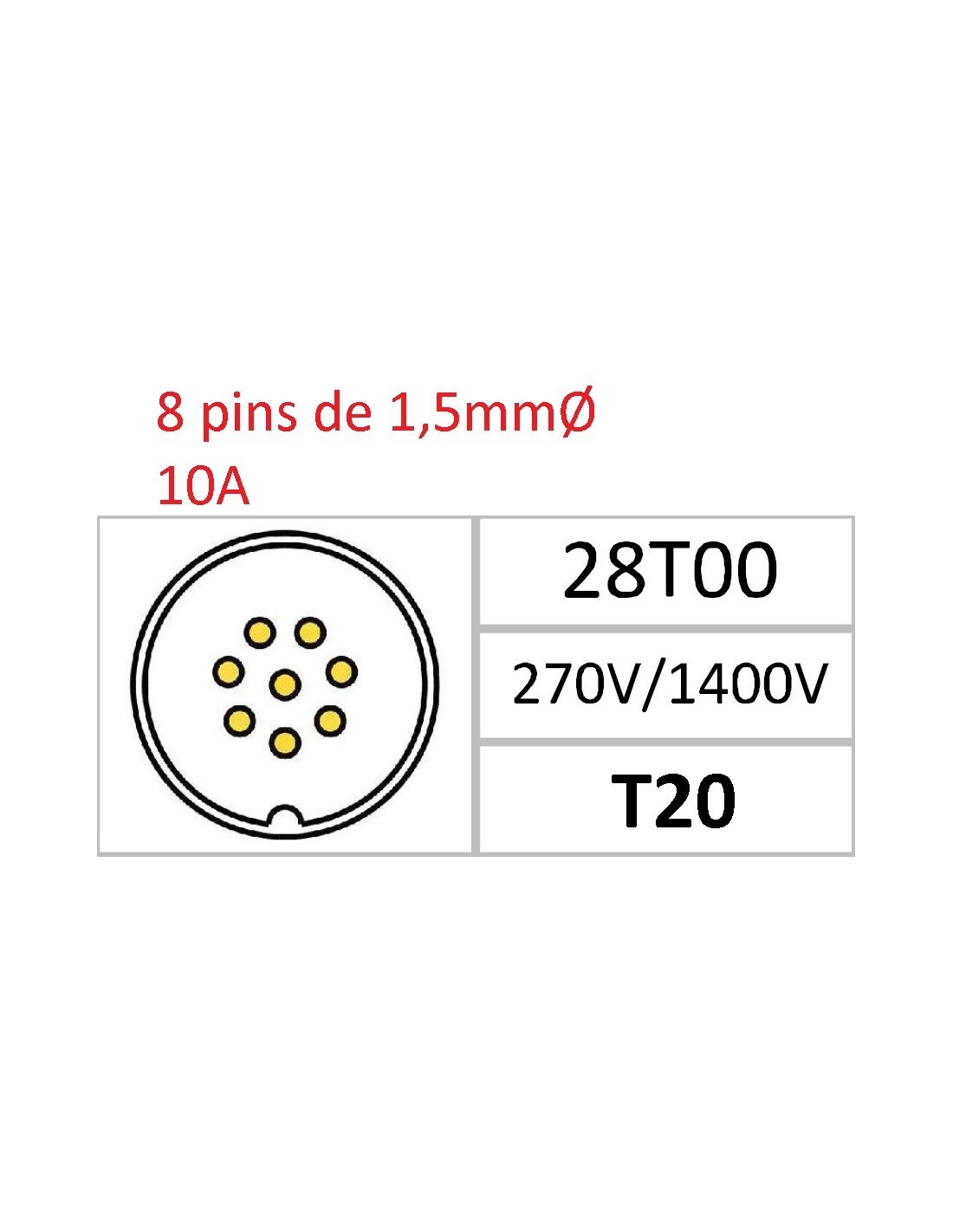 BASE HEMBRA T-20 8-PINS 10A 270V÷1400V SIN RACOR