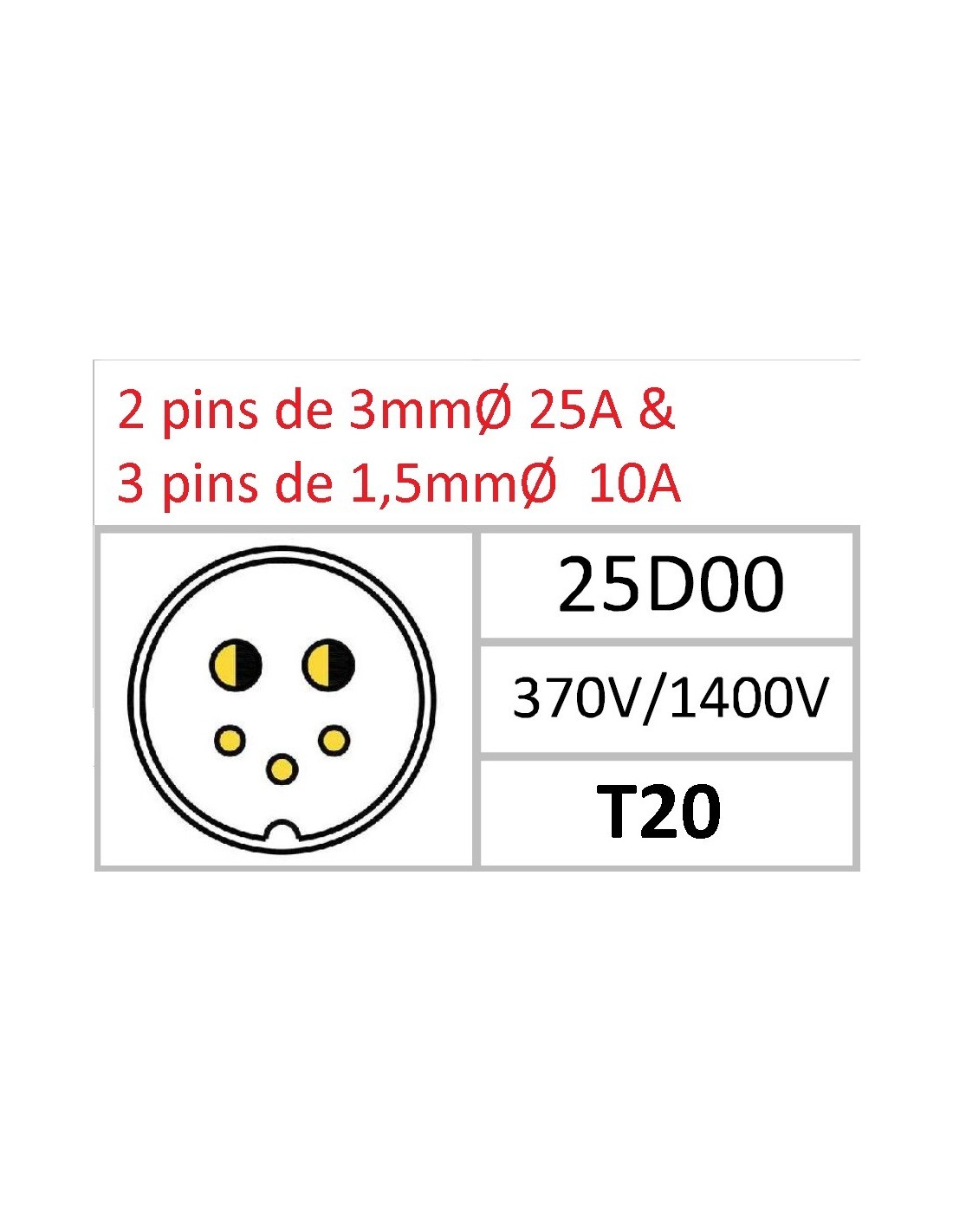 CONECTOR HEMBRA AEREO 5-PINS T-20 CON RACOR 25A+10A 370V÷1400V