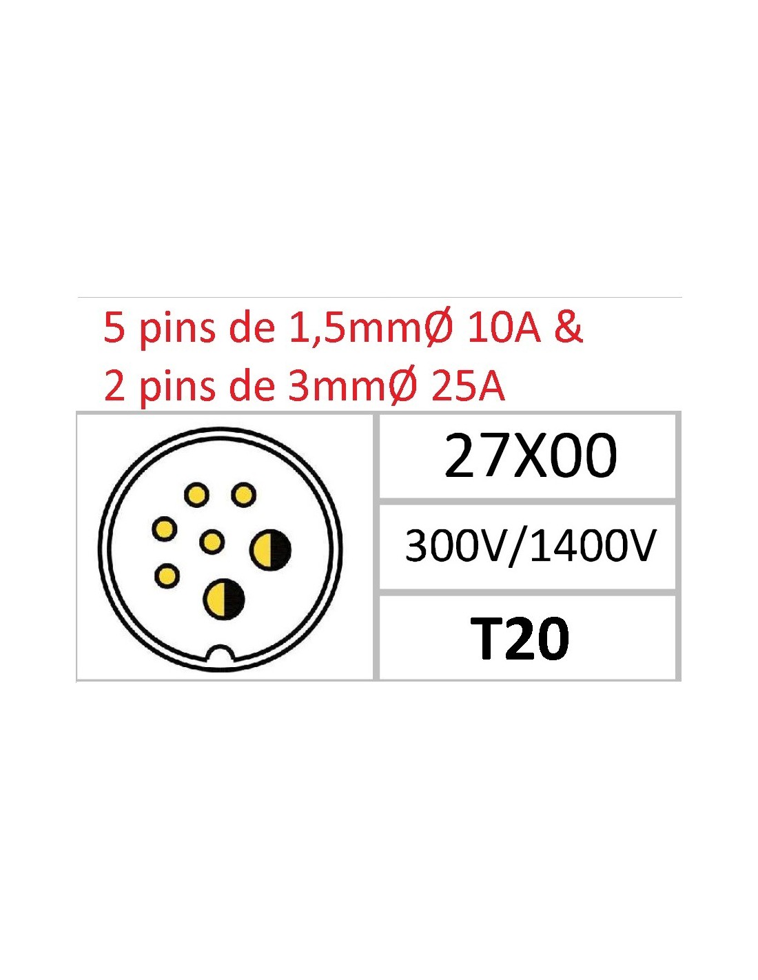 BASE HEMBRA T-20 7-PINS 25A+10A 300V÷1400 SIN RACOR