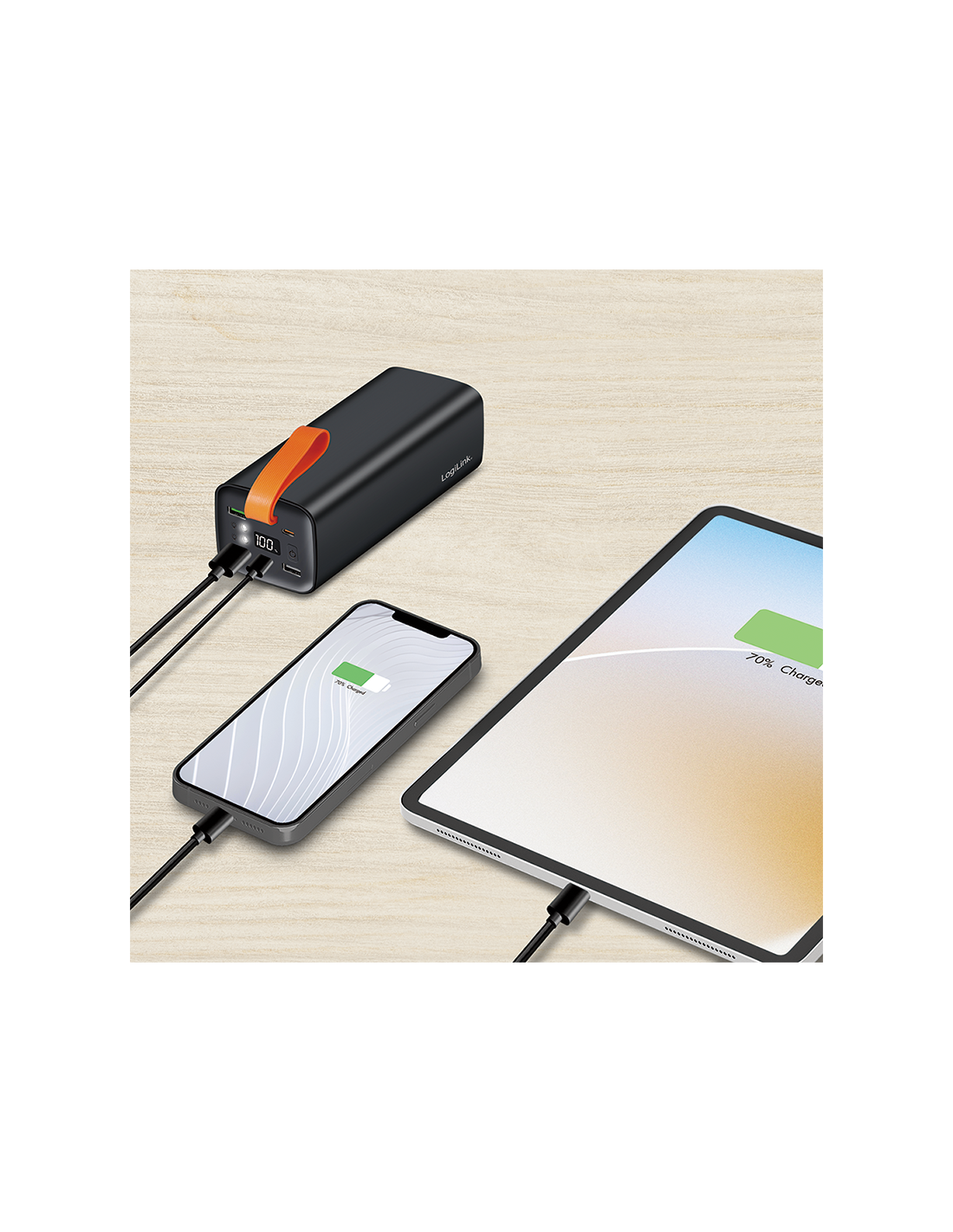 Disfruta de energía ininterrumpida con esta batería externa de 50 000 mAh que ofrece carga rápida con Power Delivery de 100 W y Quick Charge 3.0. Su pantalla LCD integrada muestra con precisión el nivel de carga restante y permite cargar hasta cuatro dispositivos simultáneamente. La linterna integrada ilumina los lugares oscuros. Con una potencia de entrada y salida de hasta 100 W, se carga a sí misma y a tus dispositivos a la velocidad del rayo. Sus completos mecanismos de protección y su robusta carcasa de aluminio la convierten en la compañera ideal para tus viajes.