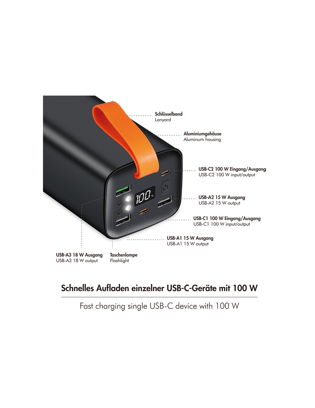 Información del producto "Powerbank 50000 mAh, QC 3.0 y PD 3.0 100 W, negro"
