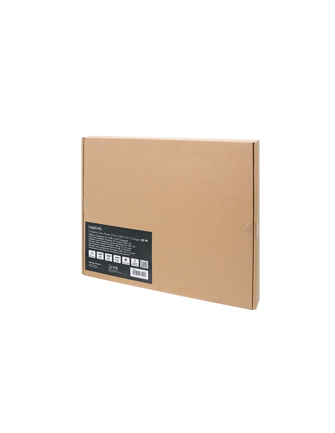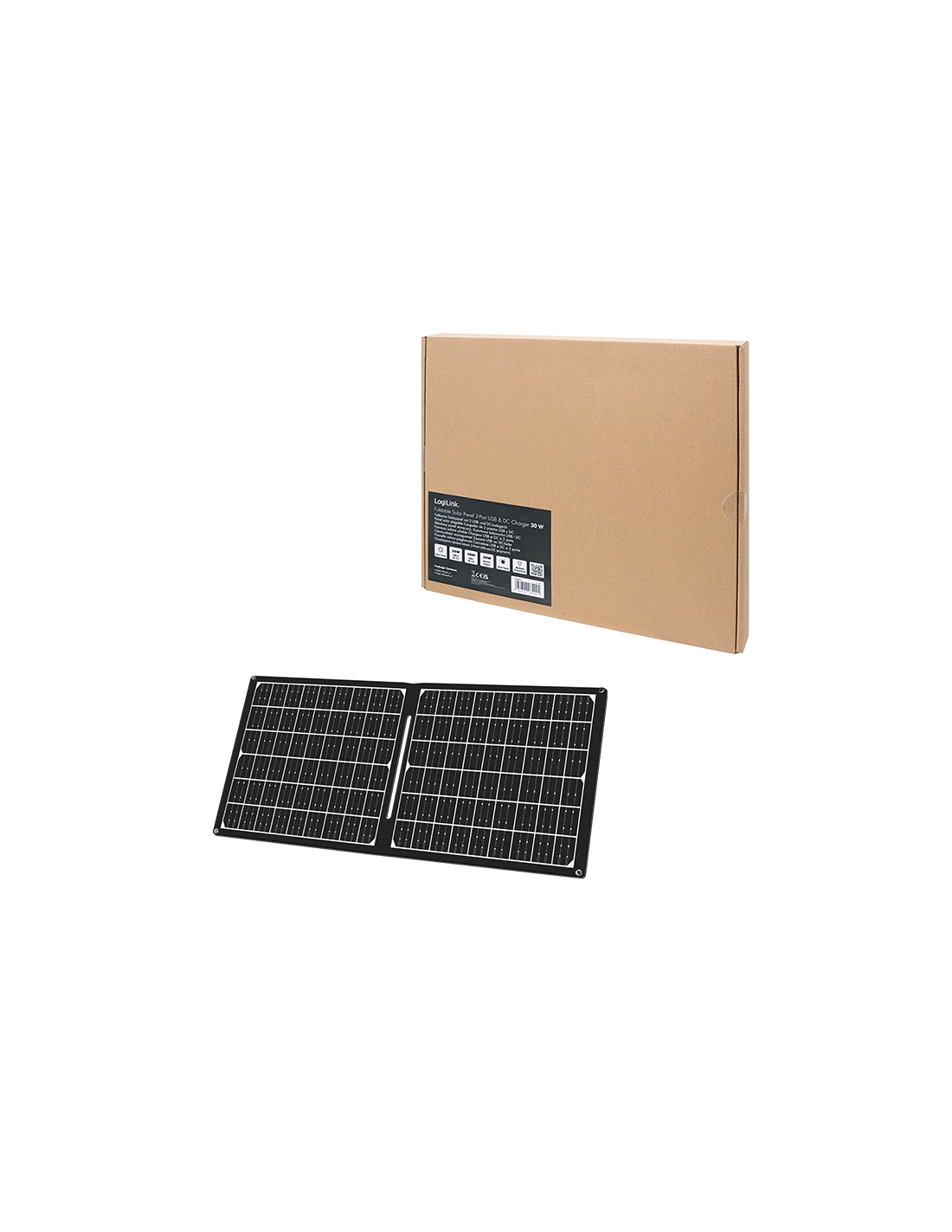 Información del producto "Cargador USB con panel solar plegable, 1x USB-A, 1x USB-C, 1x DC5521, 30W, IP65, negro"