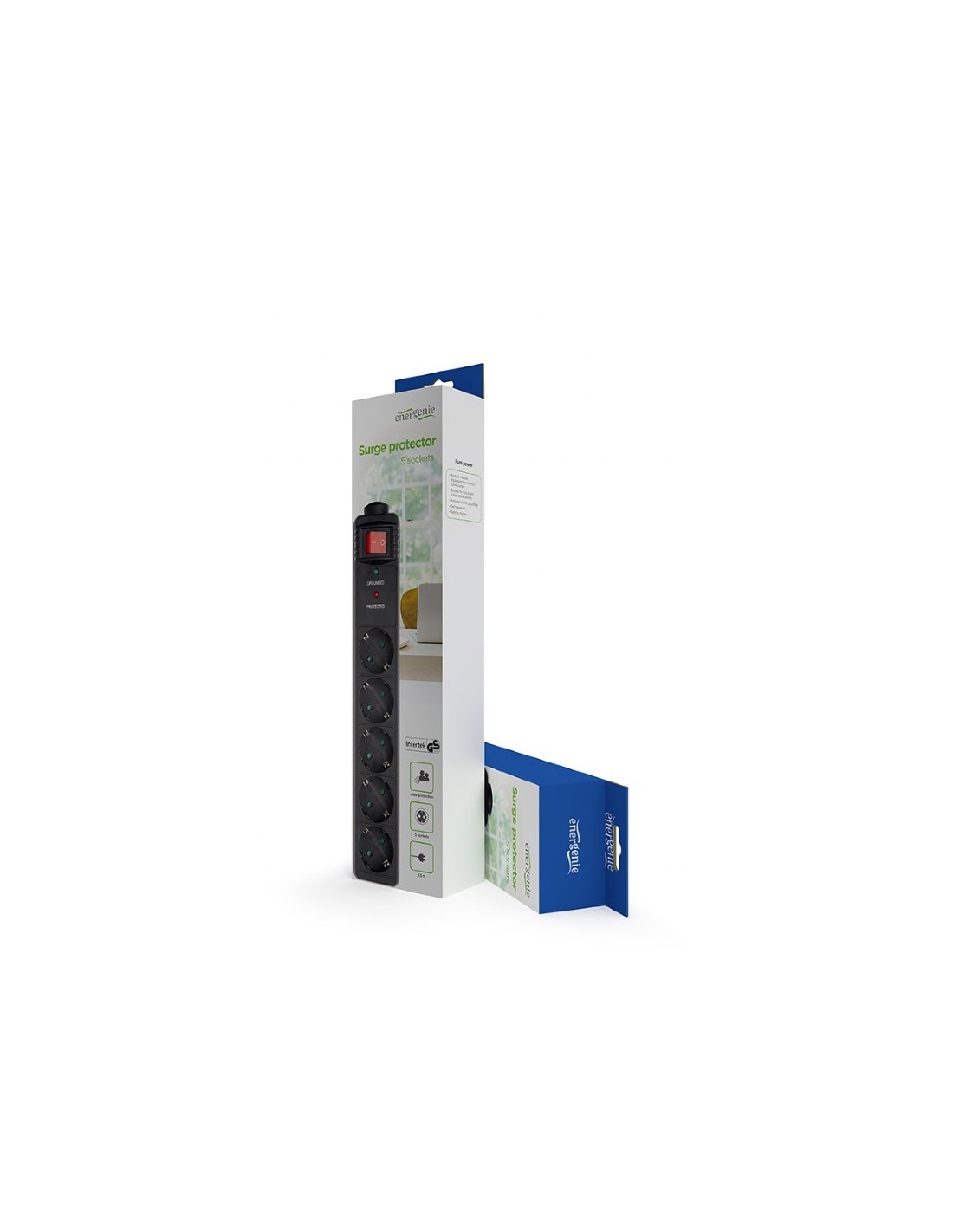Regleta con protector contra sobretensiones, 5 tomas, 1,5 m