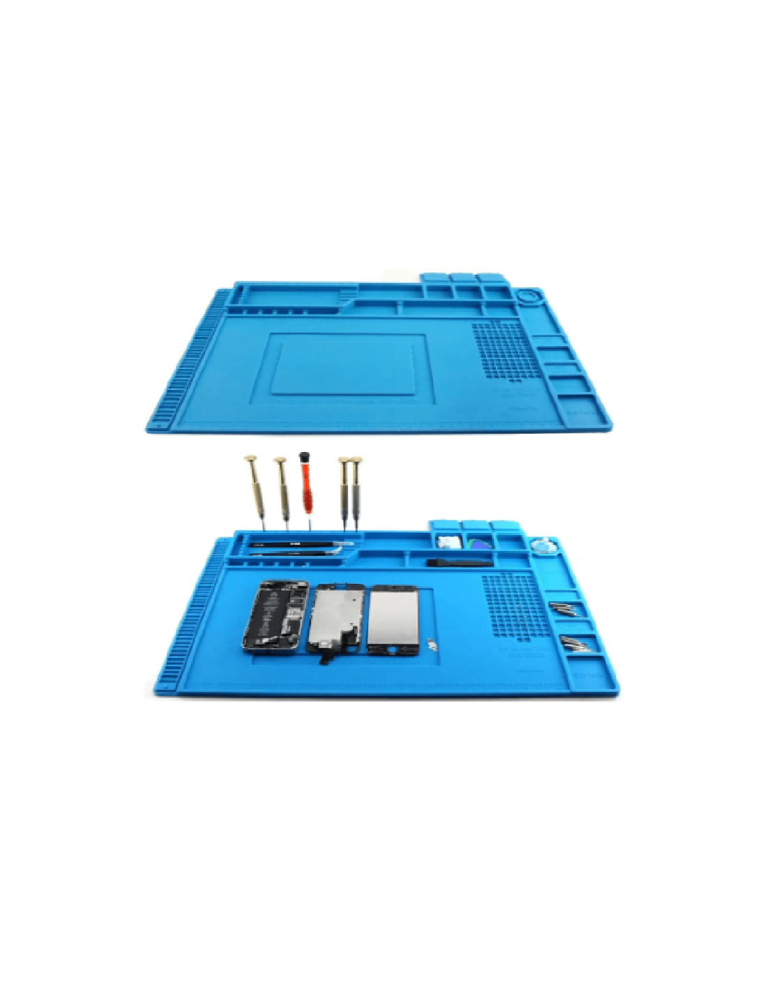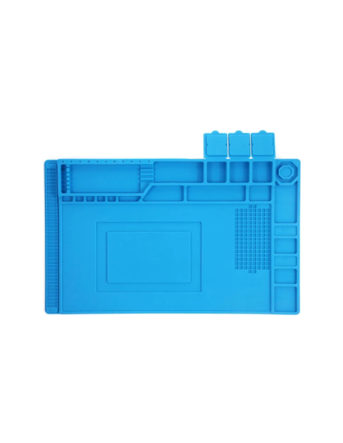 La alfombrilla de soldadura PCW10A tiene varias características prácticas que hacen que su trabajo de reparación sea más fácil y eficiente. Las cajas de almacenamiento integradas le permiten guardar cómodamente sus herramientas y componentes, mientras que los fuertes imanes mantienen las piezas pequeñas en su lugar de forma segura. Estas características le permiten trabajar de manera más eficiente y eficaz y reducen el riesgo de que se pierdan o extravíen piezas.