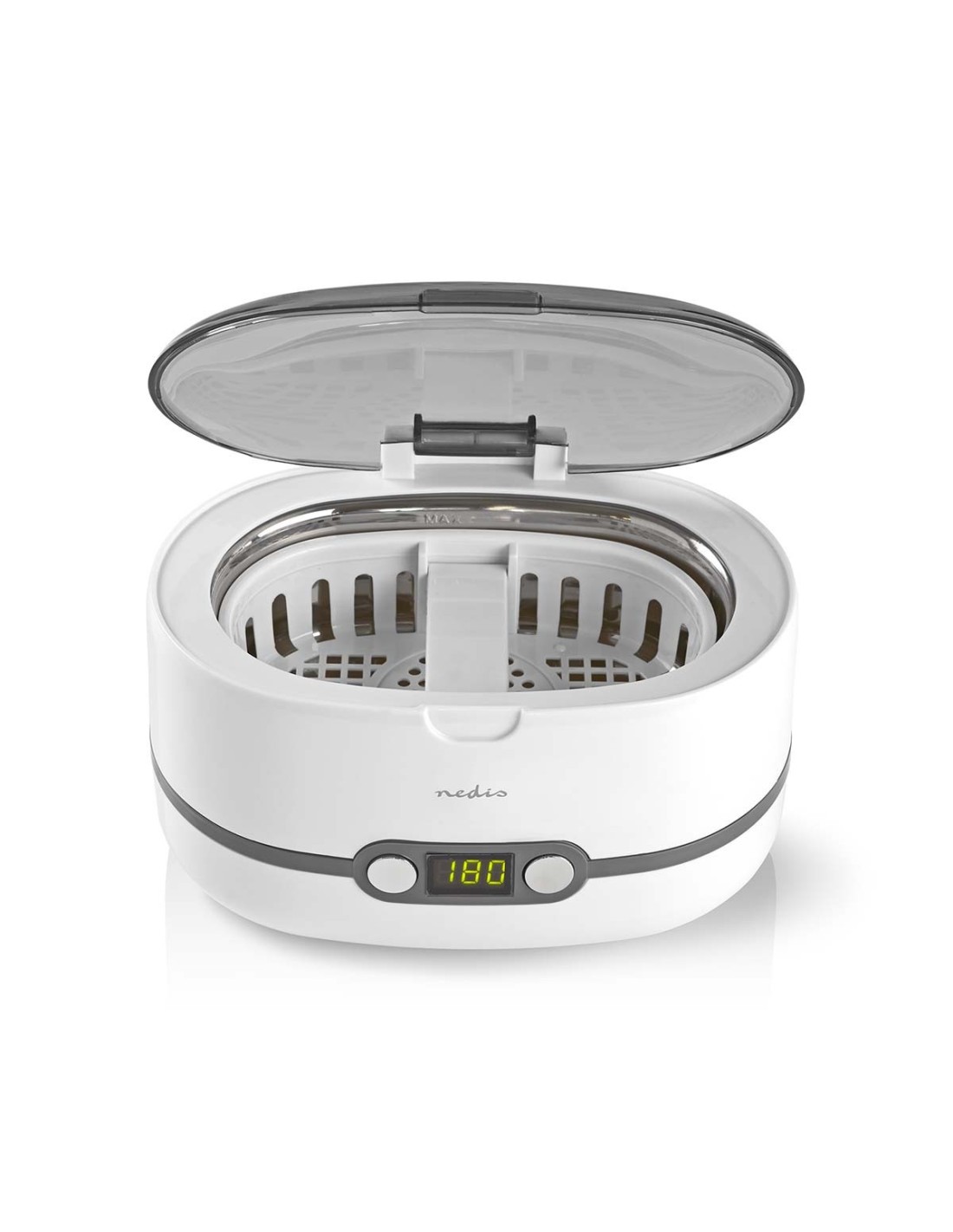 Las ondas sónicas vibran a una frecuencia de 43 kHz, lo que garantiza que todo el polvo y la suciedad se eliminan cuidadosamente. Solo tiene que depositar las joyas en el recipiente de 600 ml y arrancar el dispositivo. Incluso las esquinas más difíciles quedarán perfectamente limpias. El temporizador digital permite establecer el tiempo de limpieza entre 1,5 y 8 minutos. La cubierta transparente le permite ver cómo se limpian sus joyas. Mantenga sus joyas, adornos e incluso sus gafas totalmente brillantes, como nuevos.