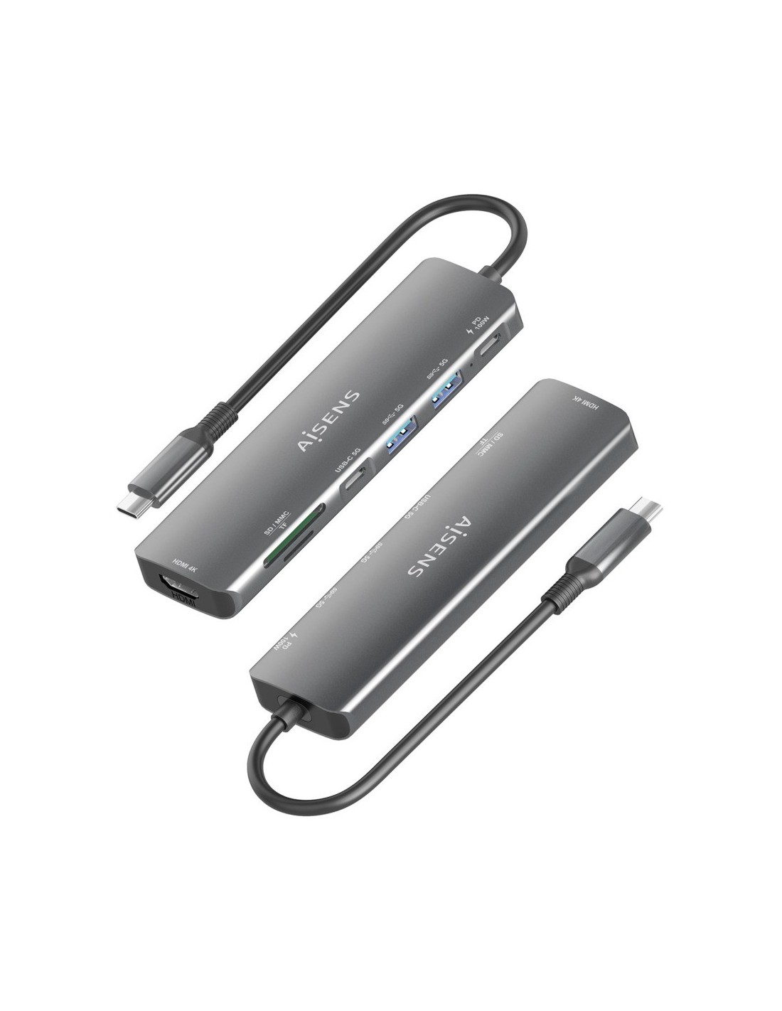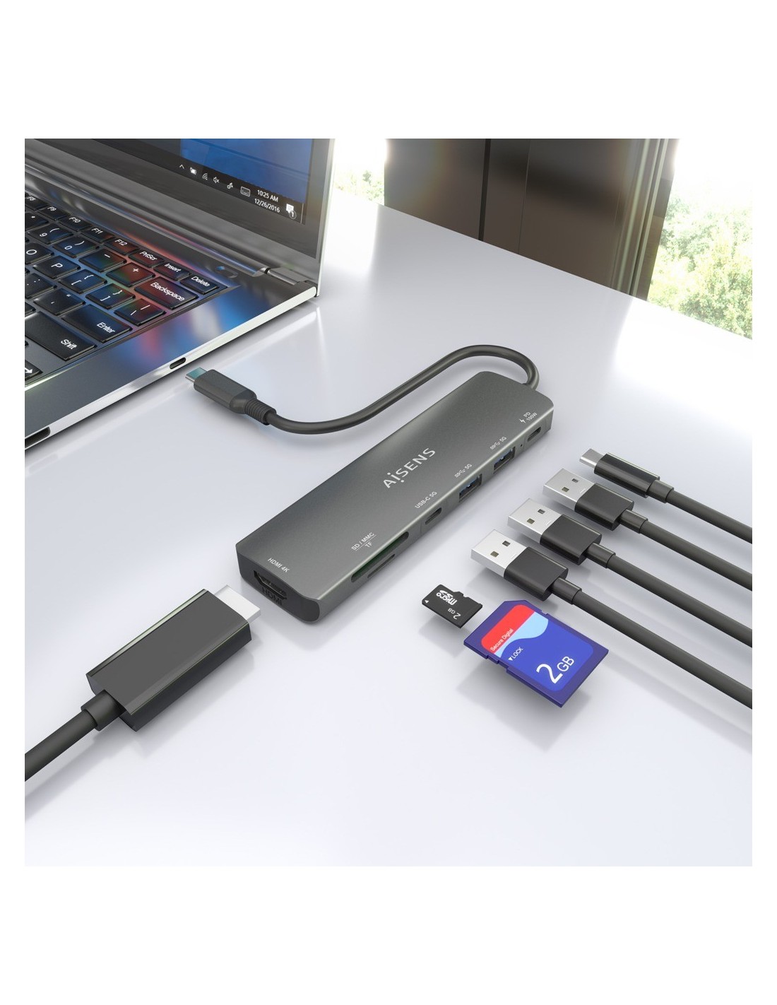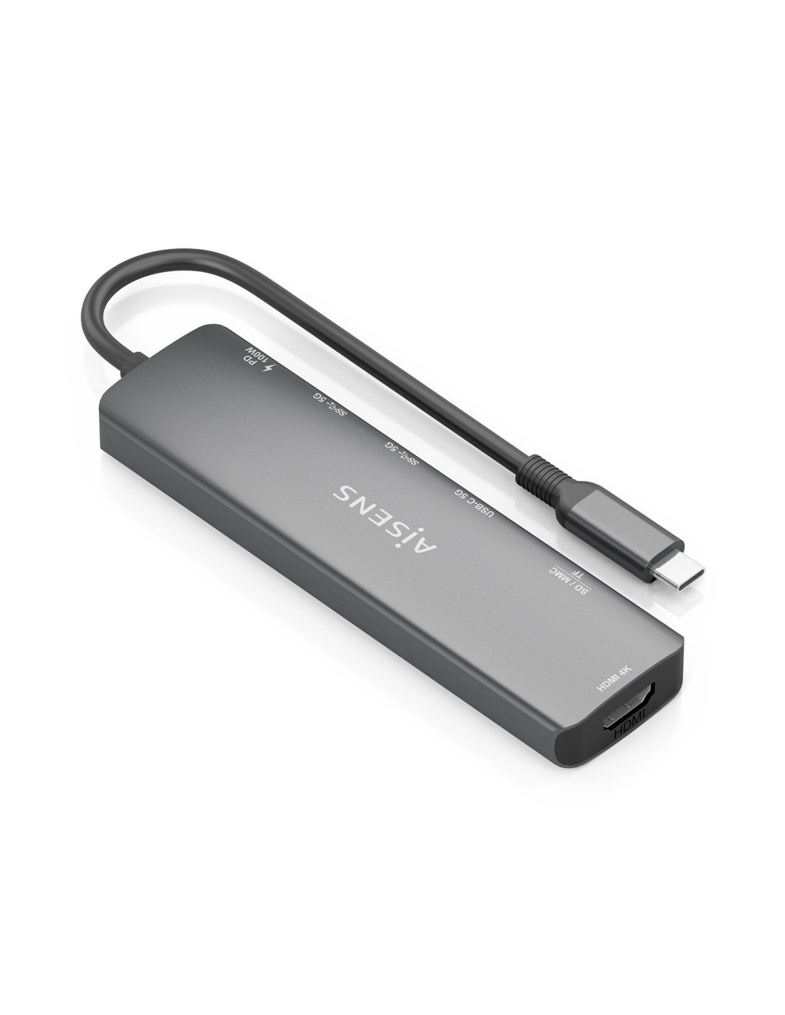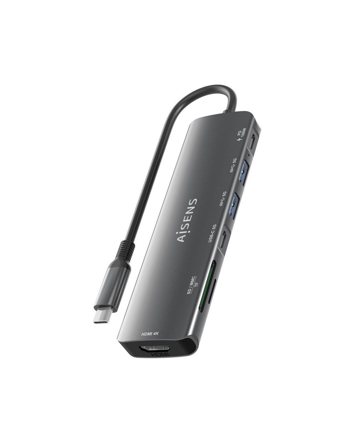> Conversor USB-C a 1xHDMI, 2xUSB-A, 1xUSB-C, 1xUSB-C PD 100W, 1xLector de tarjeta SD, 1xLector de tarjeta MICRO SD