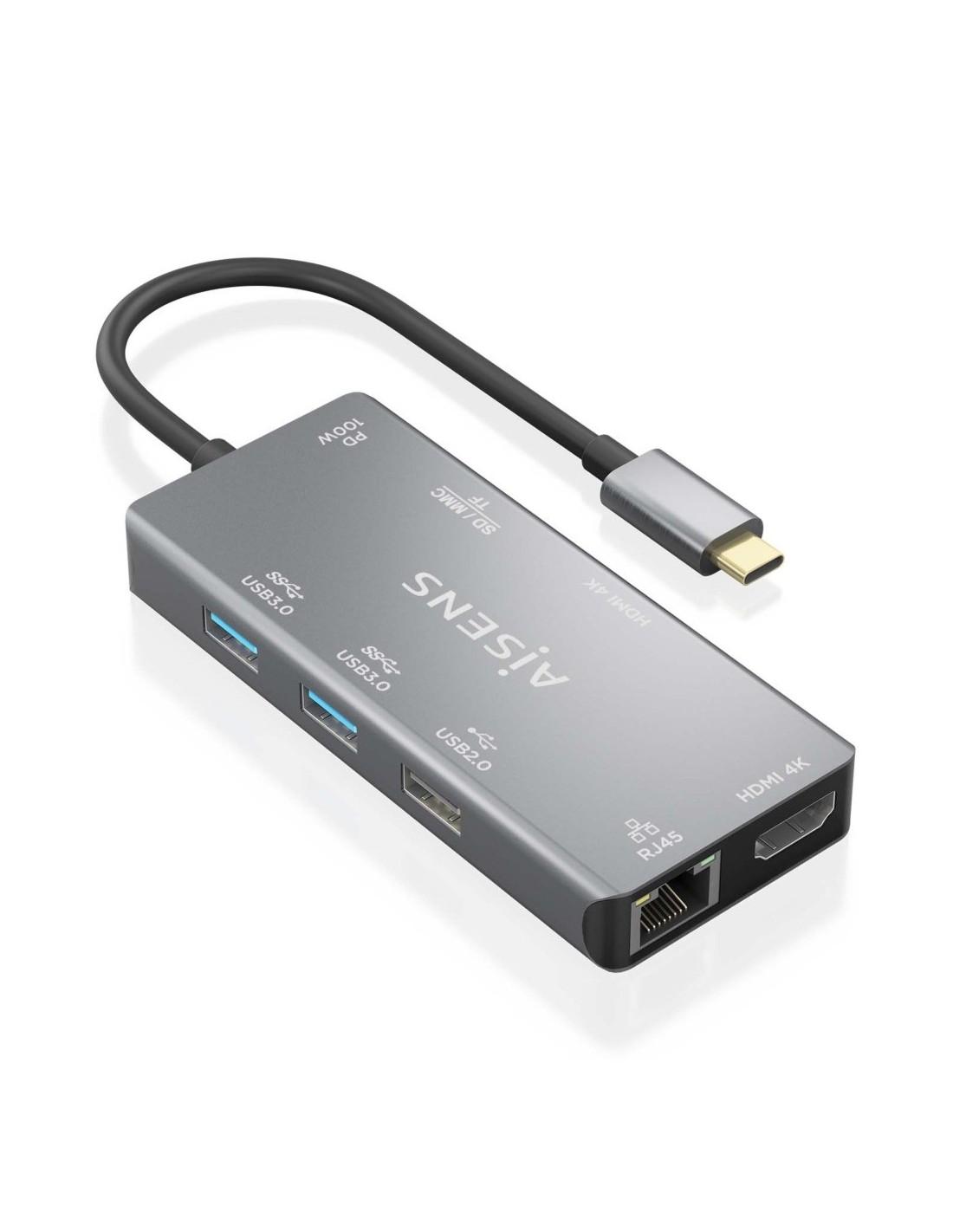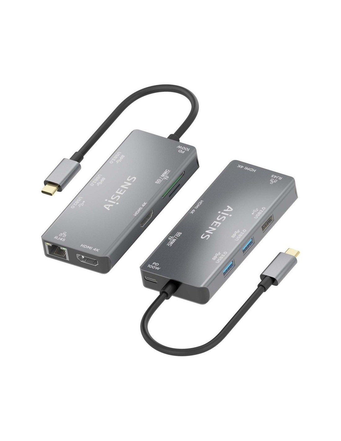 > Conversor USB-C a 2xHDMI, 1xRJ45, 2xUSB-A USB3.0, 1xUSB-A USB2.0, 1xUSB-C PD 100W, 1xLector de tarjeta SD, 1xLector de tarjeta MICRO SD