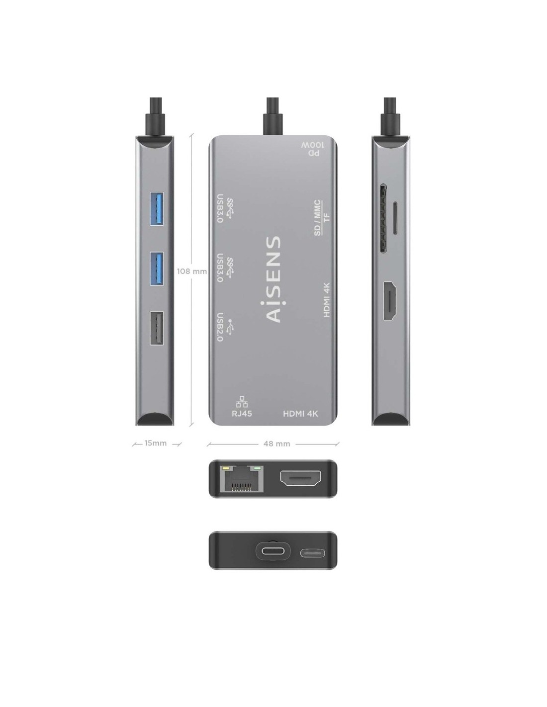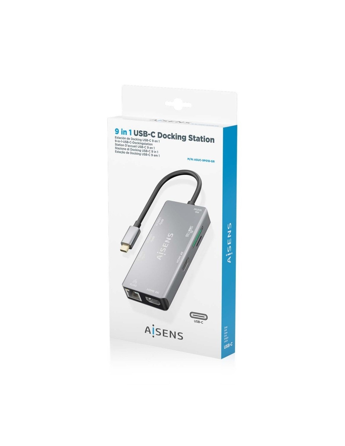 14 días de devoluciónUSB-C Dock 9 en 1, USB-C a 2xHDMI, 1xRJ45, 2xUSB-A USB3.0, 1xUSB-A USB2.0, 1xUSB-C PD, 1xSD, 1xMicro SD, Gris, 15 CM