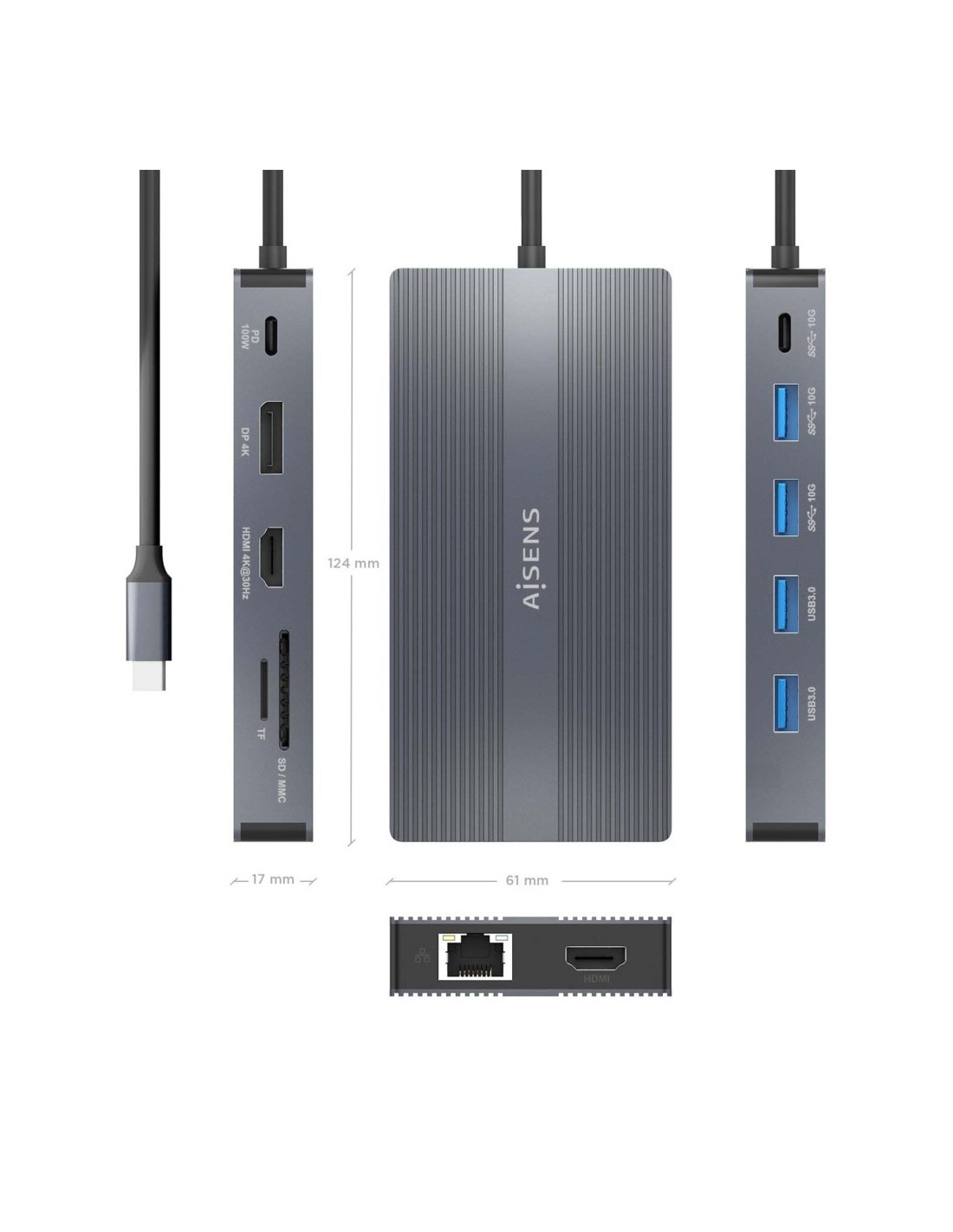 > Conversor USB-C a 2xHDMI, 1xDISPLAYPORT SST MST, 1xRJ45, 2xUSB-A 5G, 2xUSB-A 10G, 1xUSB-C 10G, 1xUSB-C PD 100W, 1xLector de tarjeta SD, 1xLector de tarjeta MICRO SD