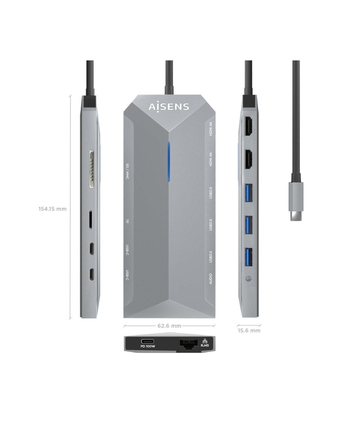 14 días de devoluciónUSB-C Dock 12 en 1, USB-C A 2xHDMI, 1xRJ45, 3xUSB-A, 2xUSB-C, 1xUSB-C PD, 1xAudio, 1xSD, 1xMicro SD, Gris, 30 CM