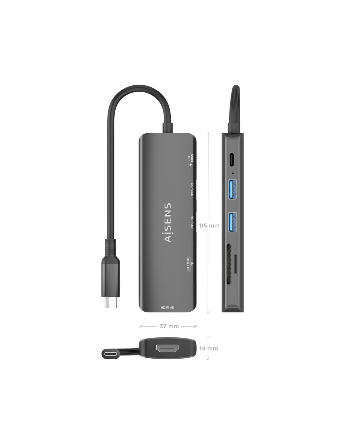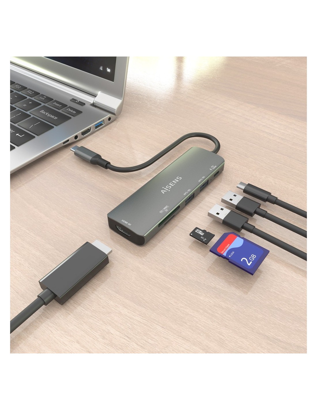 > Conversor USB-C a 1xHDMI, 2xUSB-A, 1xUSB-C PD 100W, 1xLector de tarjeta SD, 1xLector de tarjeta MICRO SD