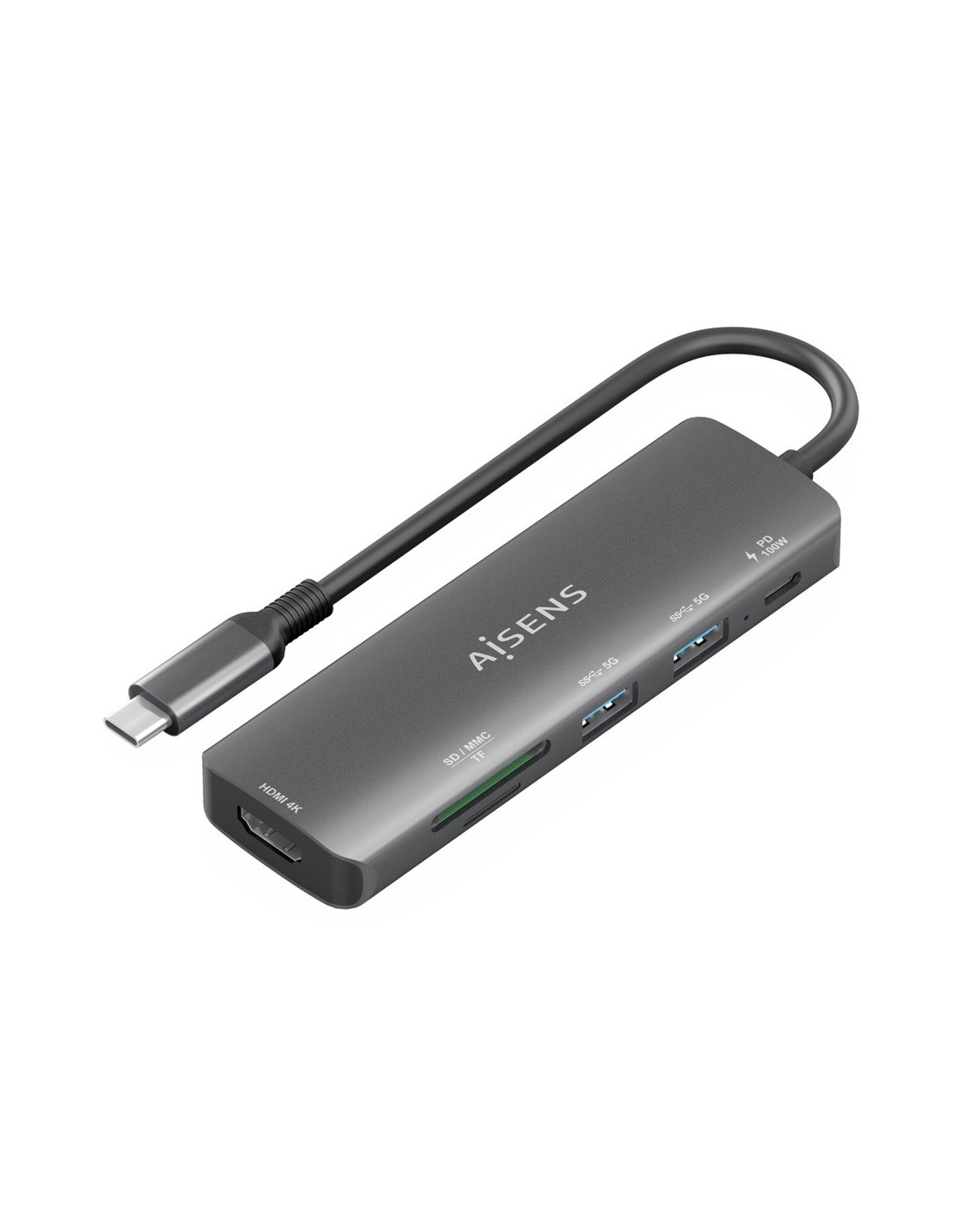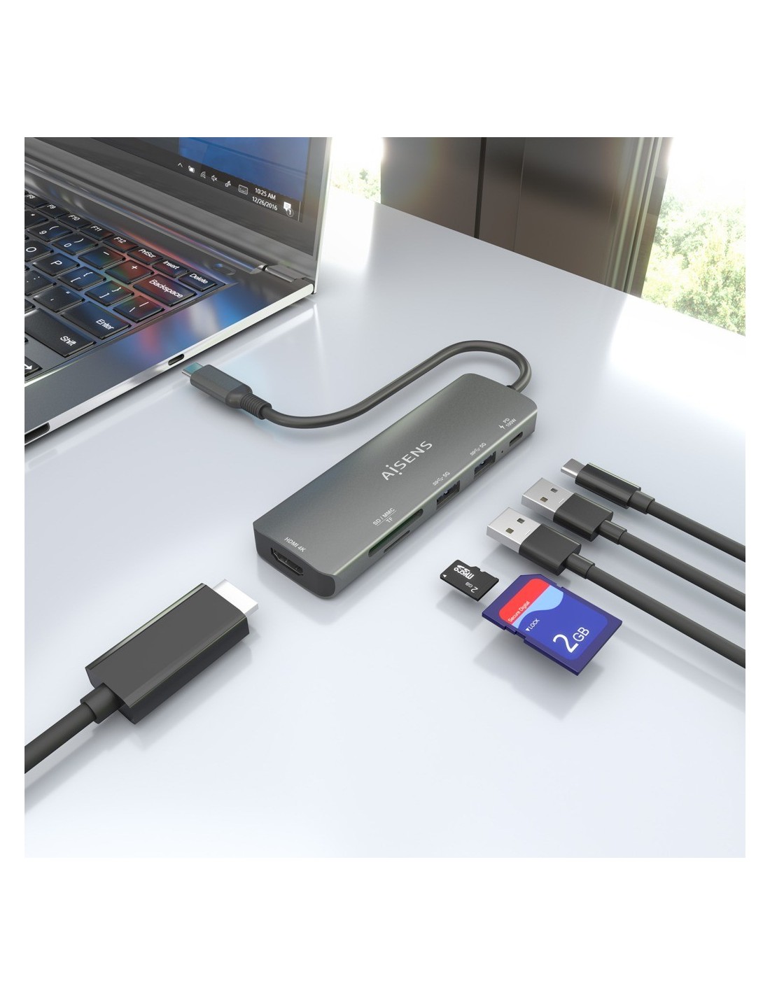 USB-C Dock 6 en 1, USB-C A 1xHDMI, 2xUSB-A, 1xUSB-C PD 100W, 1xSD, 1xMicro SD, Gris,