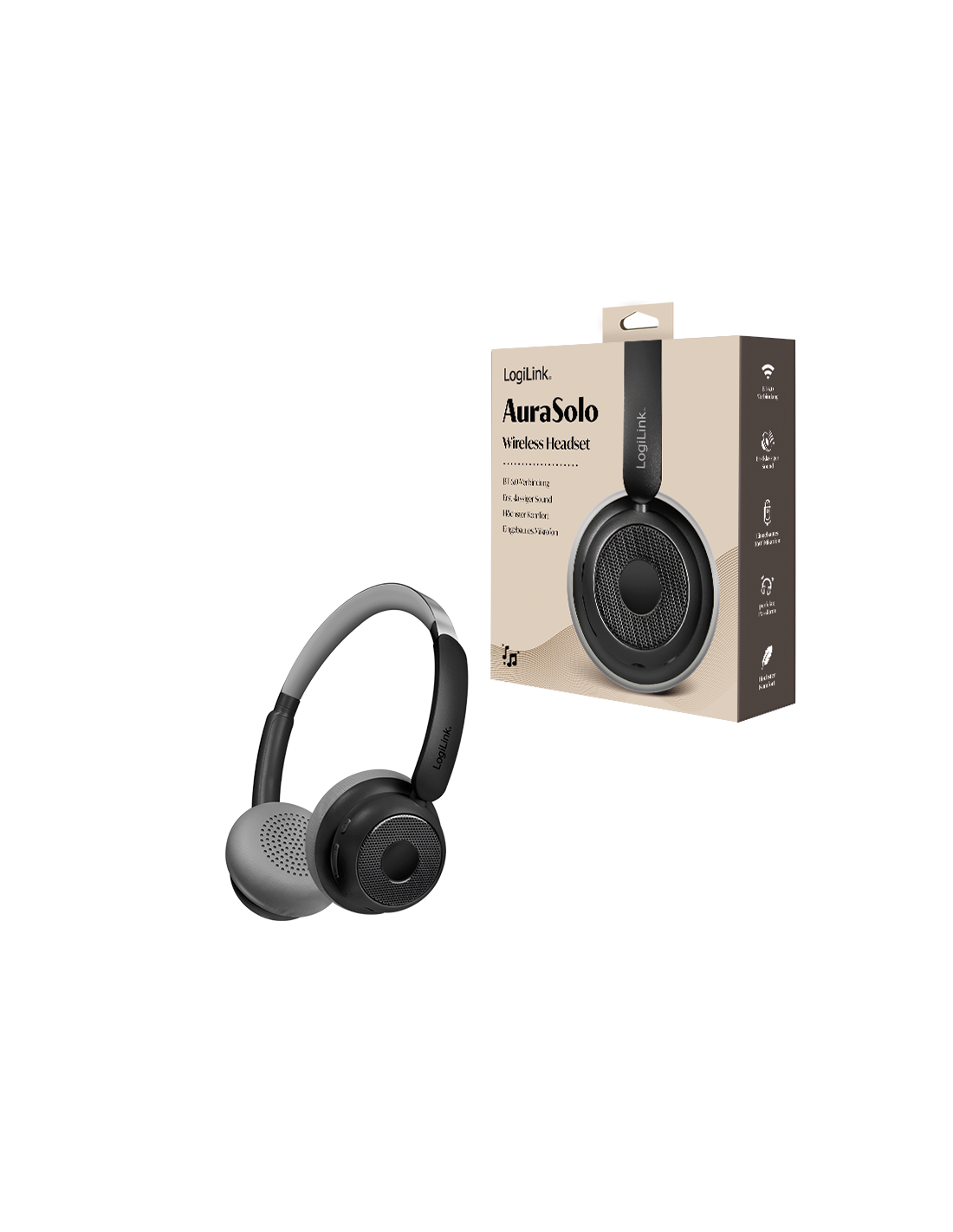 Información del producto "Auriculares BT 6.0 AuraSolo, batería recargable de 20 horas, ANC, Ø40 mm, multicontrol, negro"Los auriculares inalámbricos AuraSolo combinan la libertad inalámbrica con una calidad de sonido excepcional para tu día a día, ya sea en el trabajo, de viaje o de relax. Con la última tecnología Bluetooth 6.0, disfrutarás de conexiones fiables y hasta 10 metros de libertad de movimiento. Si prefieres un cable, también dispones de una conexión de audio de 3,5 mm.