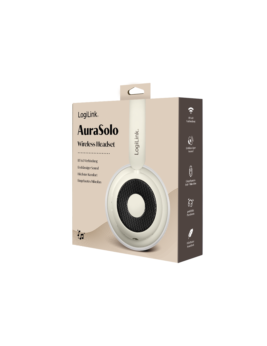 Información del producto "Auriculares BT 6.0 AuraSolo, batería recargable de 20 horas, ANC, Ø40 mm, multicontrol, marrón"