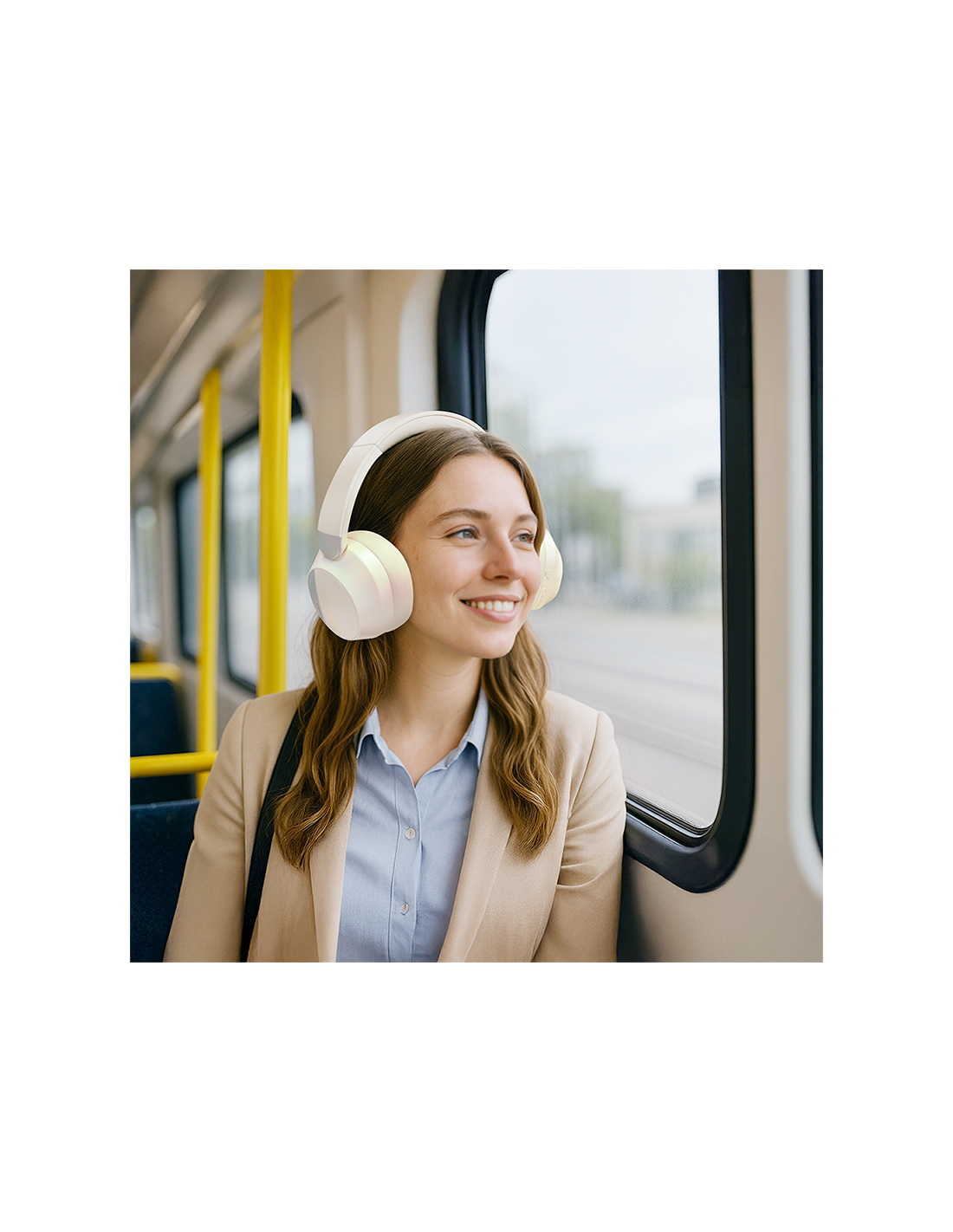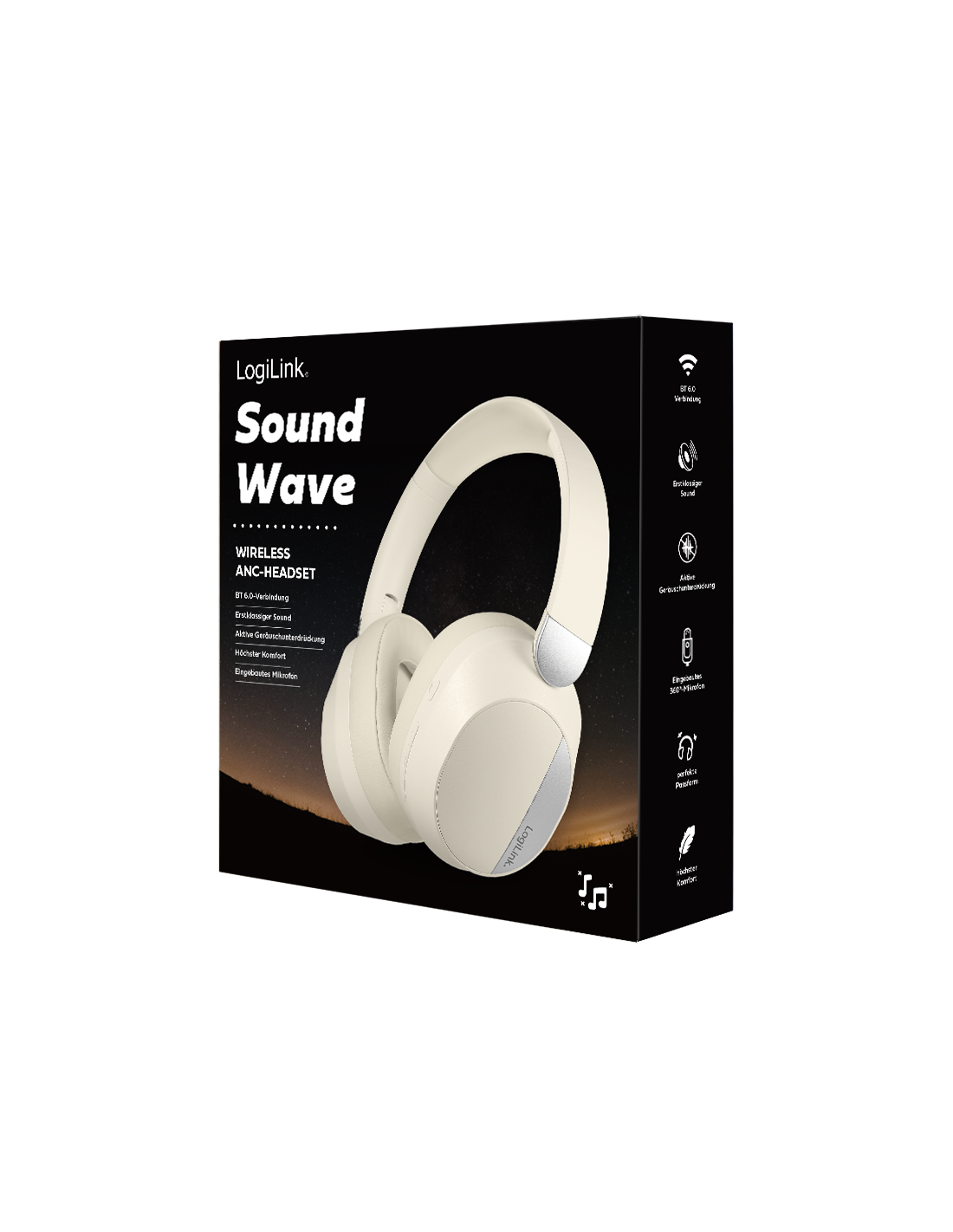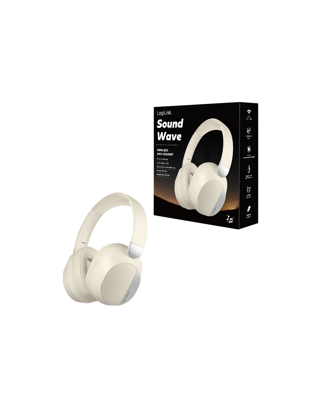 Información del producto "Auriculares Bluetooth 6.0 Sound Wave, ANC, entrada auxiliar de 3,5 mm, 15 horas de batería, color crema/plateado"
