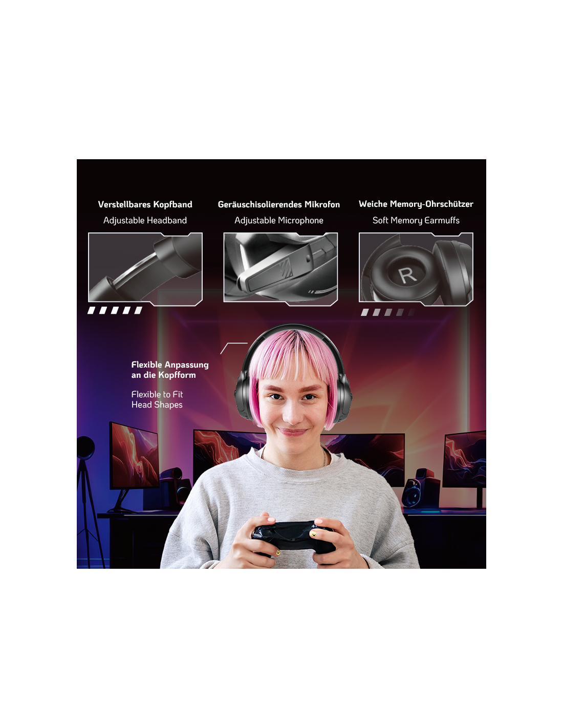 Los BT0070 son unos auriculares inalámbricos para juegos con micrófono de 360° integrado y conexión AUX de 3,5 mm, optimizados para una comunicación nítida. Gracias a su diadema ajustable y sus suaves almohadillas con memoria, ofrecen un ajuste perfecto y una gran comodidad. Con una impresionante duración de batería de hasta 50 horas, son ideales para largas sesiones de juego.