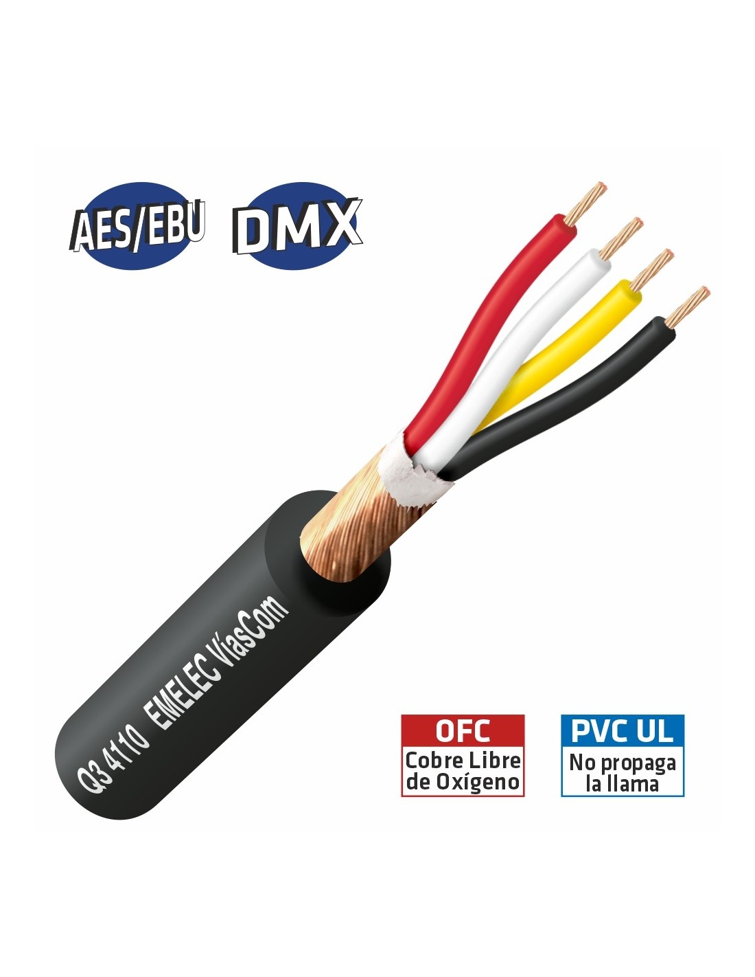 •Cable diseñado para transmisión de señales digitales de acuerdo con los estándares AES/EBU y DMX.