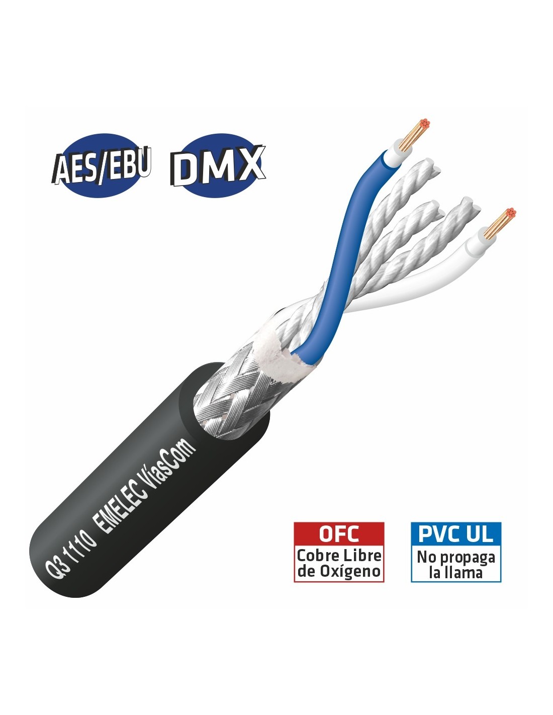 • Cable diseñado para transmisión de señales digitales de acuerdo con los estándares AES/EBU y DMX para usos profesionales en aplicaciones muy exigentes.