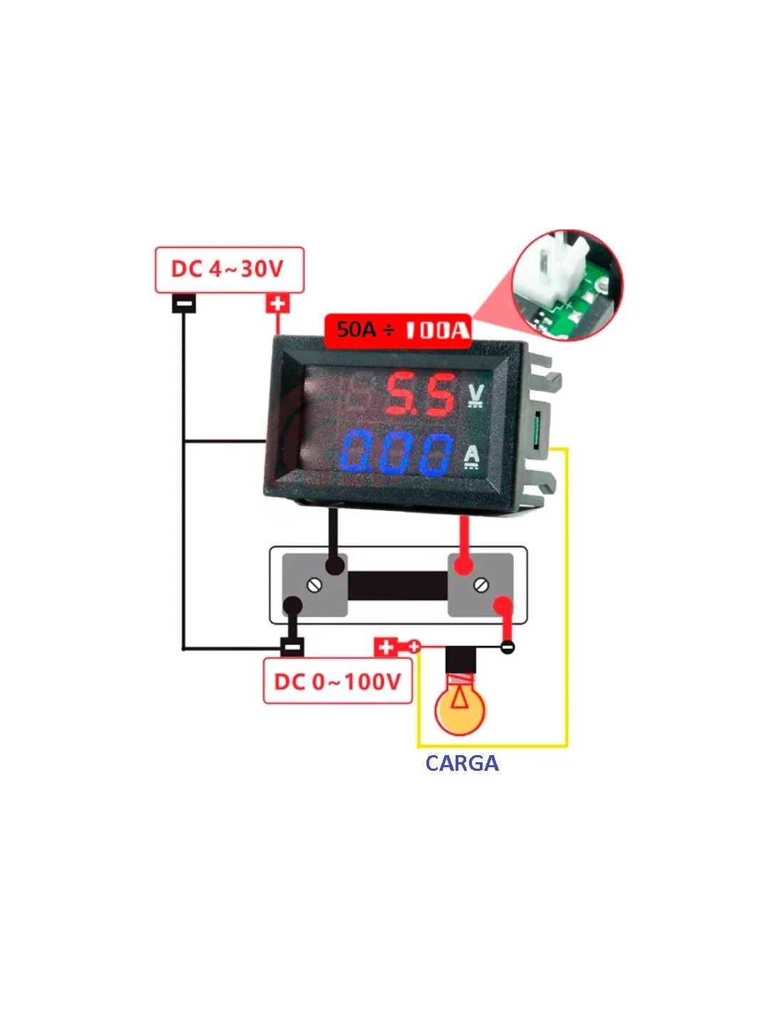 VOLTIMETRO & AMPERIMETRO DIGITAL DE 50A 100V PARA PANEL