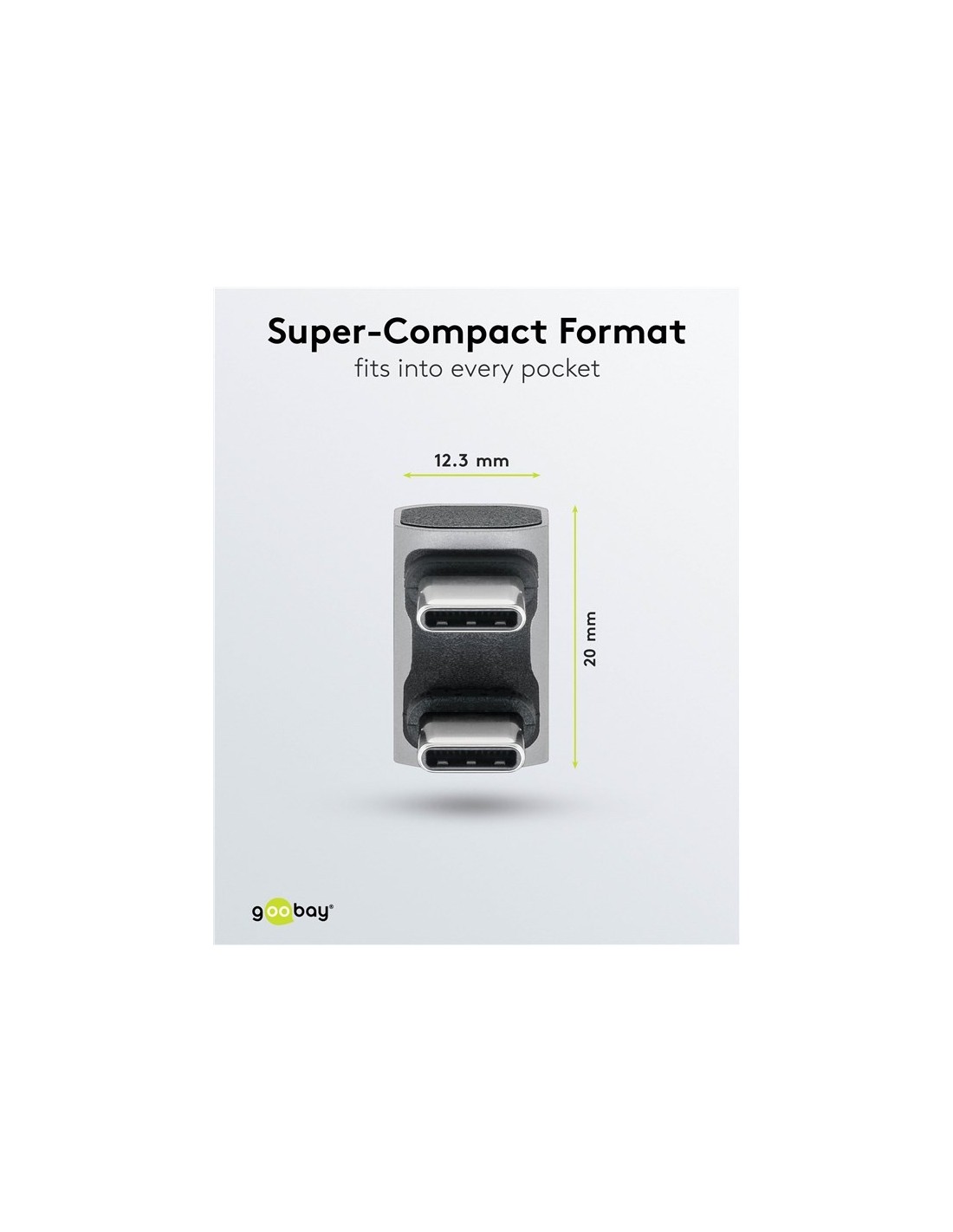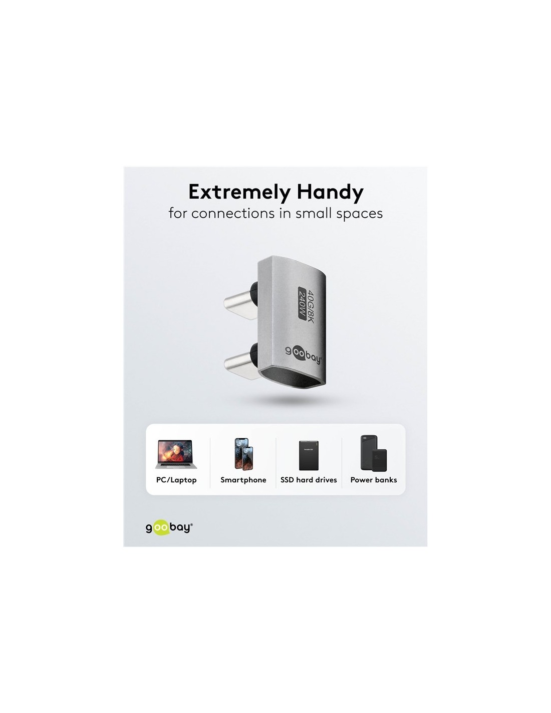- Especialmente útil para conexiones en espacios pequeños, por ejemplo, para conectar bancos de energía o discos duros SSD a teléfonos inteligentes.