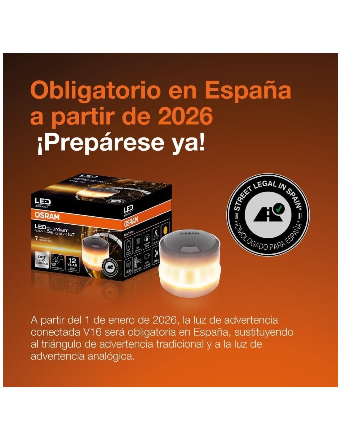 14 días de devoluciónBALIZA OSRAM LEDguardian Road Flare Signal V16 IoT.
