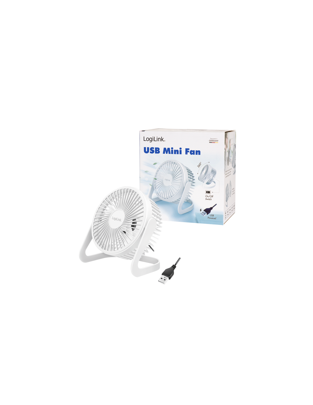 Ventilador de escritorio USB, 12,7 cm, 30 dB, blanco