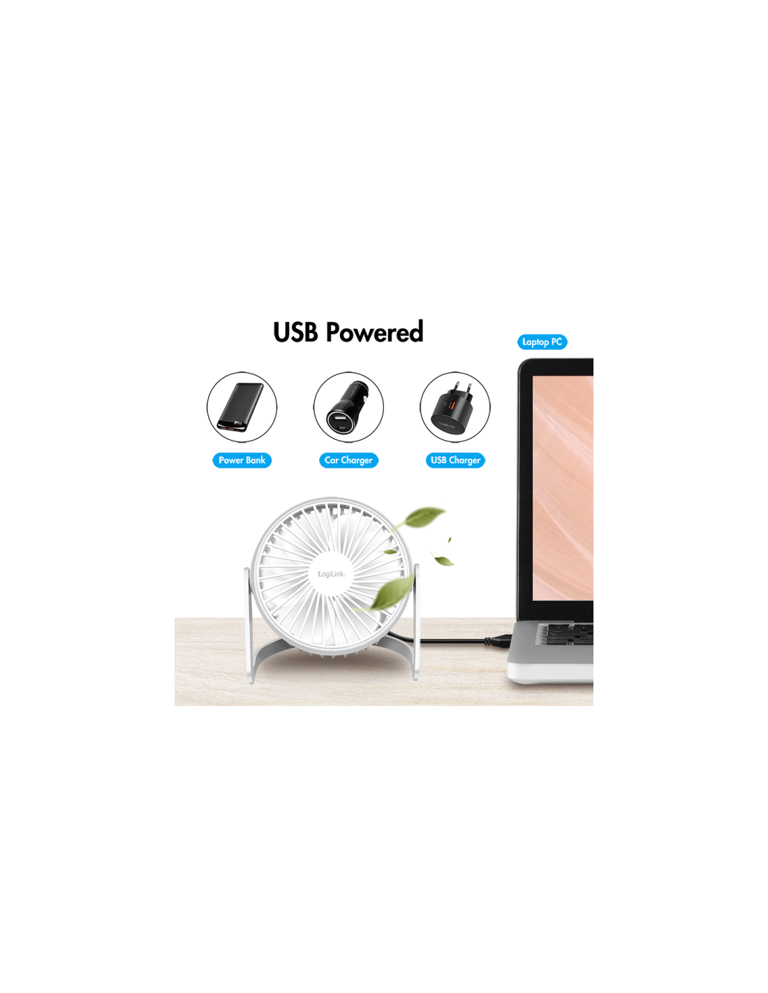 Para que tu verano sea más fresco y no te preocupes por quedarte sin batería, el ventilador de escritorio con alimentación USB funciona con cualquier puerto USB. Gracias a su funcionamiento especialmente silencioso, no te molestará mientras trabajas o duermes.