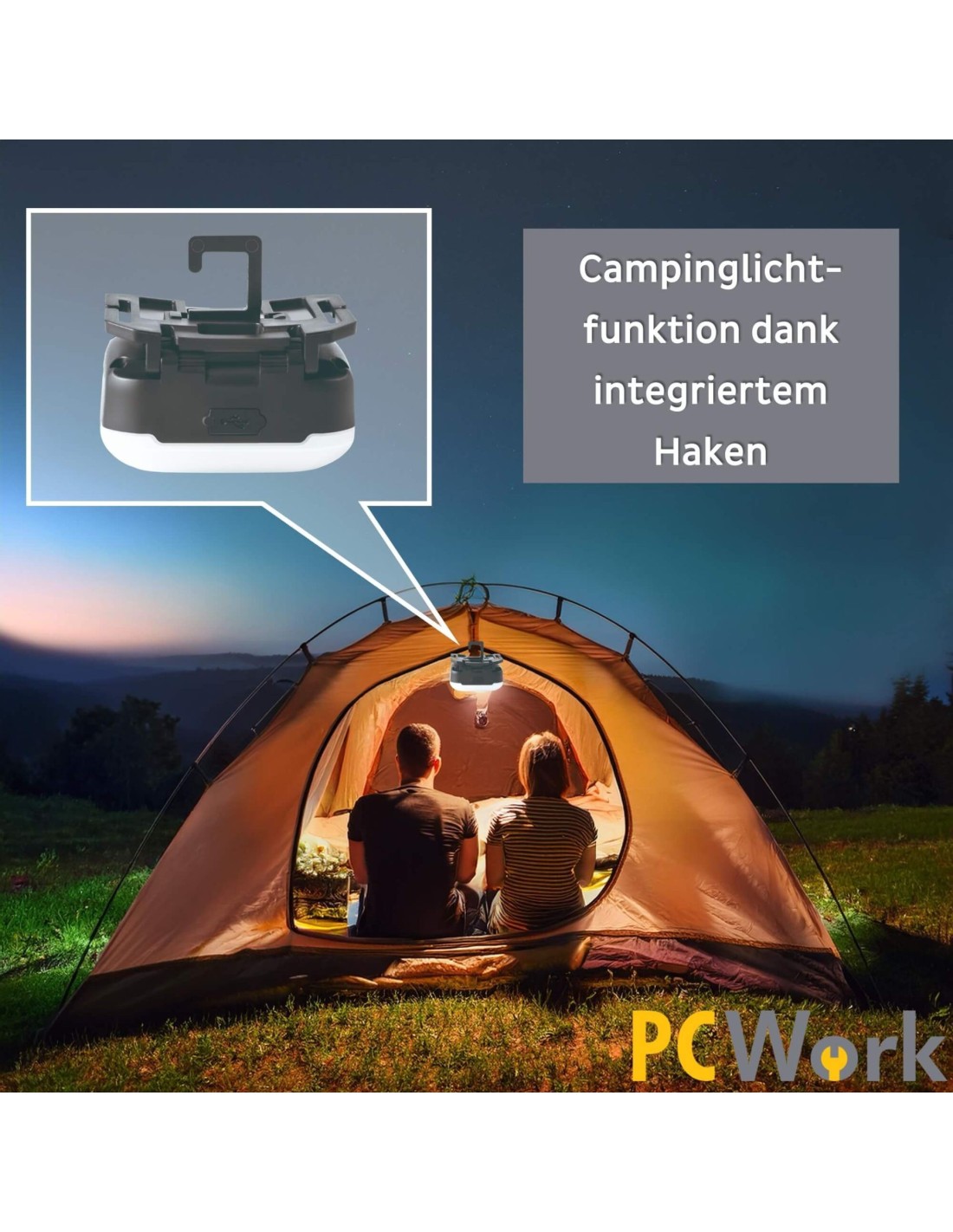 La lámpara incorpora un gancho para tienda de campaña, que permite colgarla del techo de la tienda y usarla como luz de camping
