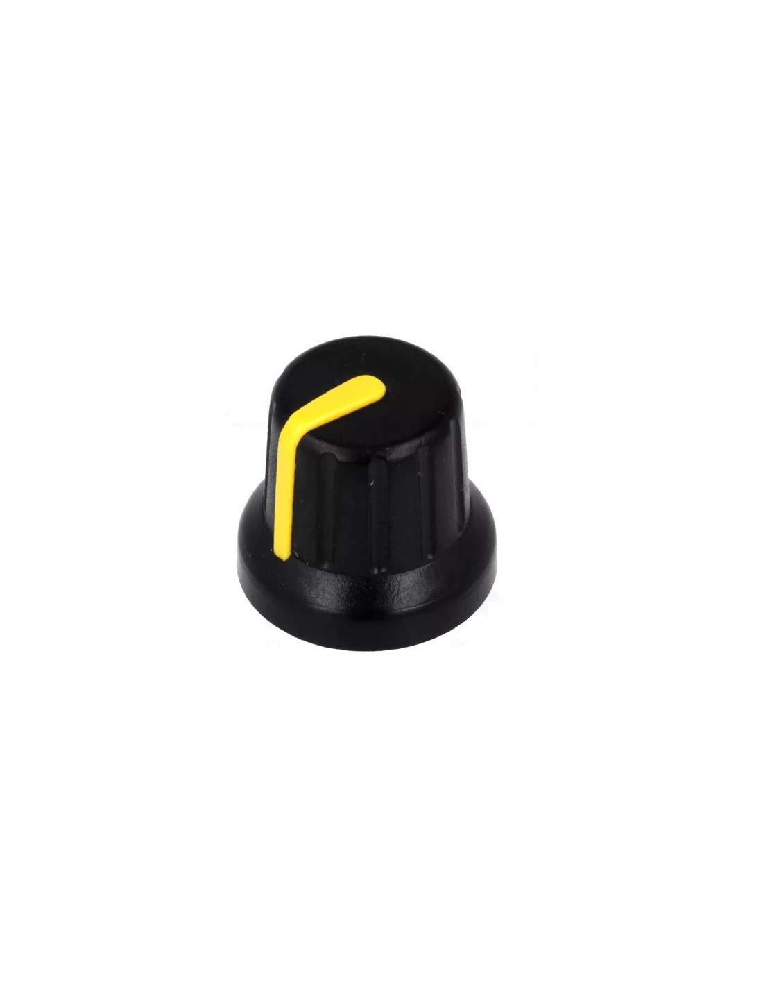 PERILLA NEGRA EJE Ø 6mm ABS Ø16x14mm CON INDICADOR AMARILLO