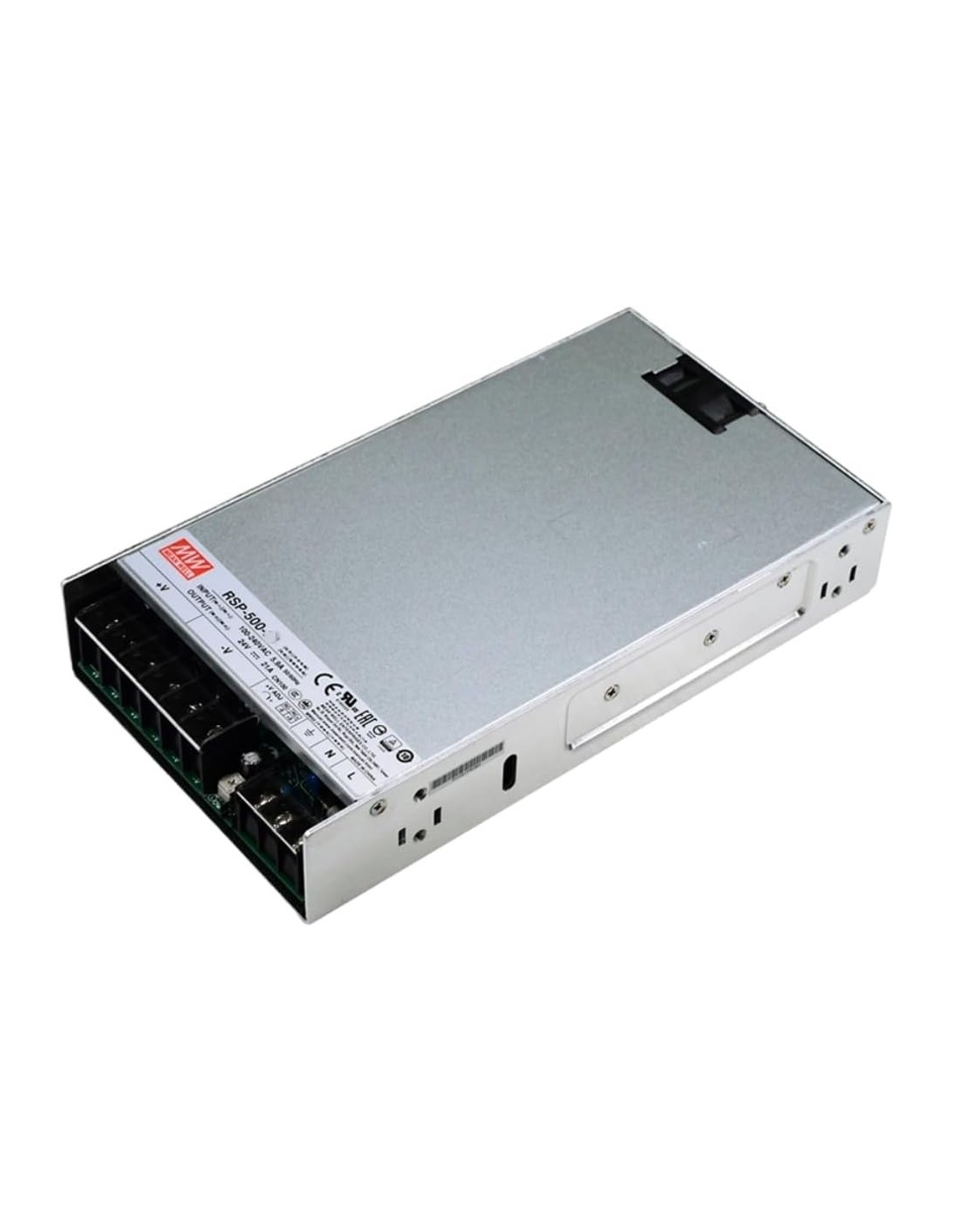 La serie RSP son fuentes conmutadas de perfil bajo (40,5mm o 1U) con factor corrector de potencia activo. Incluyen posibilidad de realizar un encendido/apagado remoto y un LED indicador de encendido.