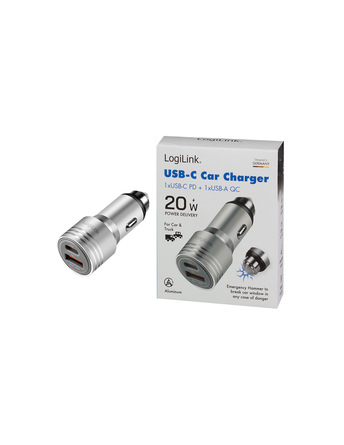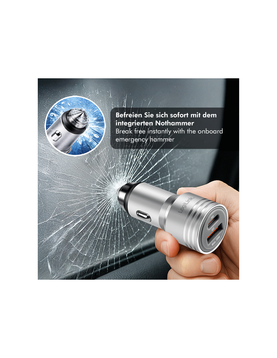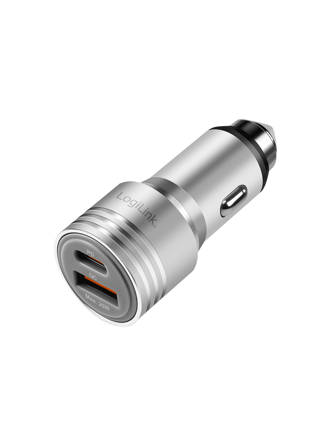 El PA0228A es un potente adaptador de carga de CC para sistemas eléctricos de vehículos de 12 V o 24 V. El dispositivo cuenta con una configuración de interfaz dual: un puerto USB-C con Power Delivery 3.0 (hasta 20 W) y un puerto USB-A con Quick Charge 2.0 (hasta 18 W). Gracias a la compatibilidad con PPS (fuente de alimentación programable), la tensión de salida se ajusta dinámicamente a las necesidades del dispositivo para optimizar la eficiencia de carga y minimizar la generación de calor. Su robusta carcasa de aleación de aluminio está diseñada mecánicamente para funcionar como un rompecristales (martillo de emergencia) en caso de emergencia. Los circuitos de protección integrados contra sobrecorriente, sobretensión y sobrecalentamiento garantizan la seguridad funcional del hardware conectado.