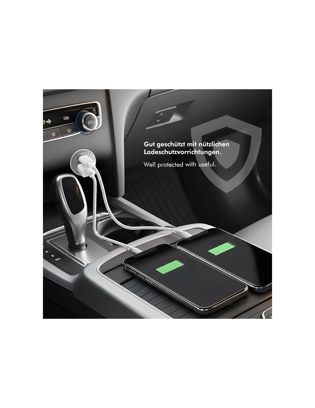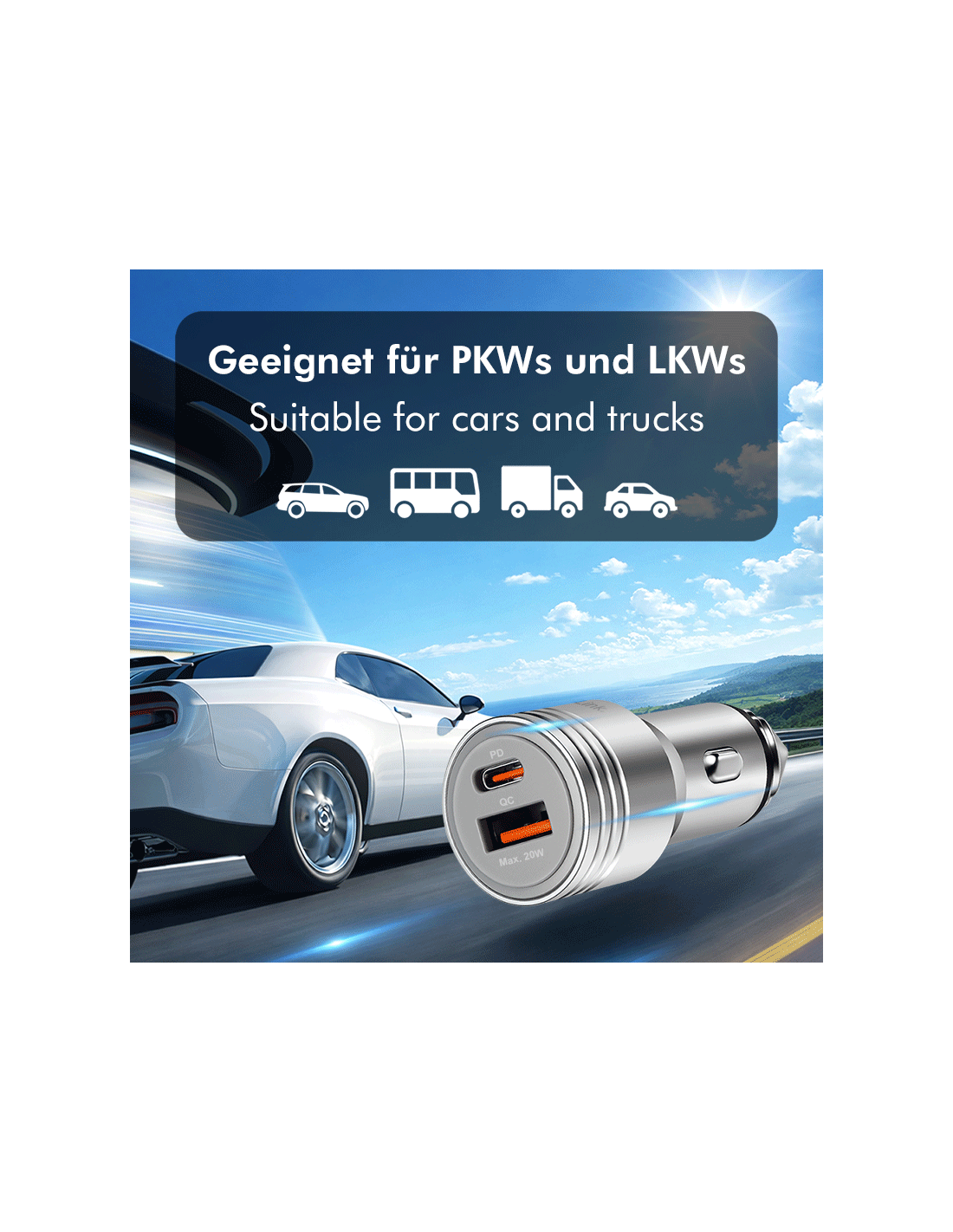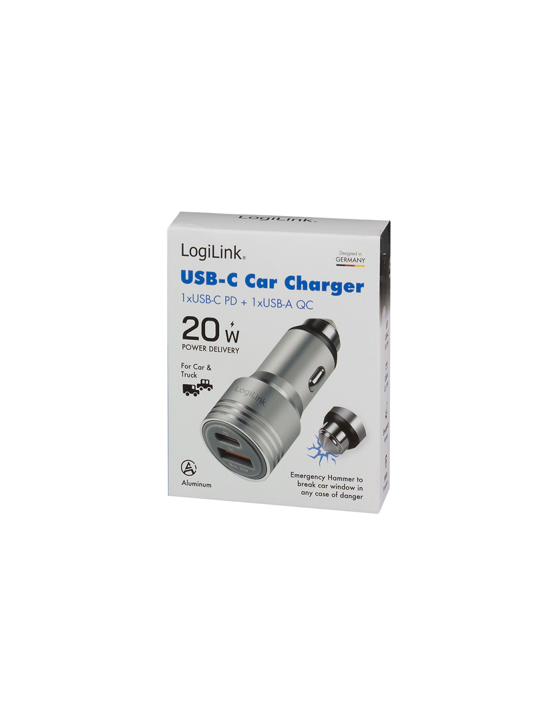 El PA0228A es un potente adaptador de carga de CC para sistemas eléctricos de vehículos de 12 V o 24 V. El dispositivo cuenta con una configuración de interfaz dual: un puerto USB-C con Power Delivery 3.0 (hasta 20 W) y un puerto USB-A con Quick Charge 2.0 (hasta 18 W). Gracias a la compatibilidad con PPS (fuente de alimentación programable), la tensión de salida se ajusta dinámicamente a las necesidades del dispositivo para optimizar la eficiencia de carga y minimizar la generación de calor. Su robusta carcasa de aleación de aluminio está diseñada mecánicamente para funcionar como un rompecristales (martillo de emergencia) en caso de emergencia. Los circuitos de protección integrados contra sobrecorriente, sobretensión y sobrecalentamiento garantizan la seguridad funcional del hardware conectado.