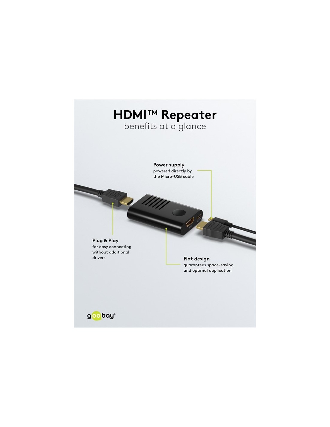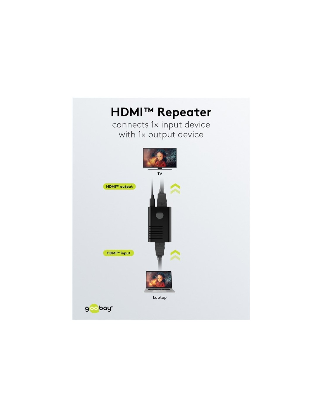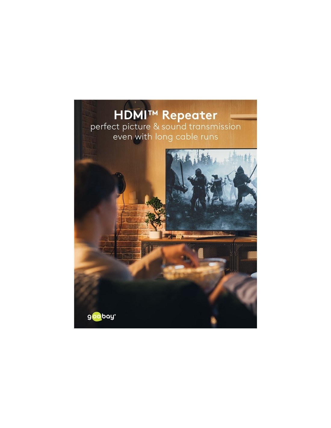 - El repetidor HDMI™ amplifica el nivel de señales HDMI™ débiles en 4K a 60 Hz a una distancia de hasta 20 m y en 4K a 30 Hz hasta más de 25 m.