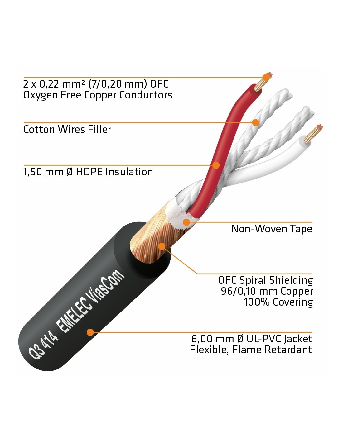 •Cable de audio balanceado de 0,22 mm² de sección con pantalla en espiral.