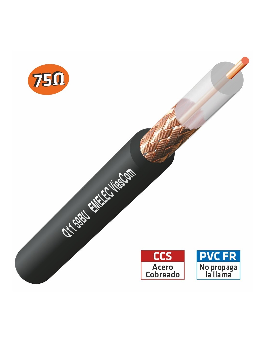 Estos cables coaxiales están cargados con una impedancia de 75Ω. Han sido desarrollados para la transmisión de señal de vídeo. El conductor central es rígido de 0,58 mm de diámetro. Su rendimiento eléctrico es de los mejores en su género.