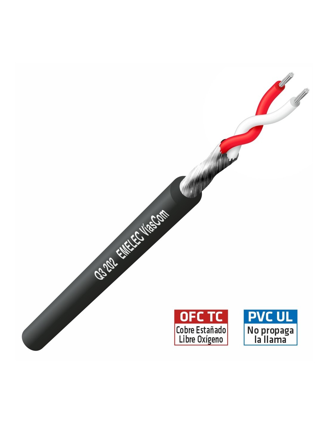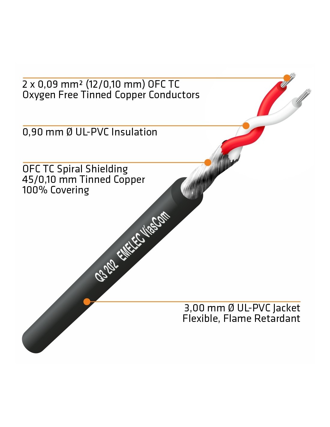 •Cable de audio balanceado de 0,09 mm² de sección de reducido volumen que incorpora un blindaje en espiral de cobre estañado OFC que lo protege eficazmente de las interferencias electromagnéticas.