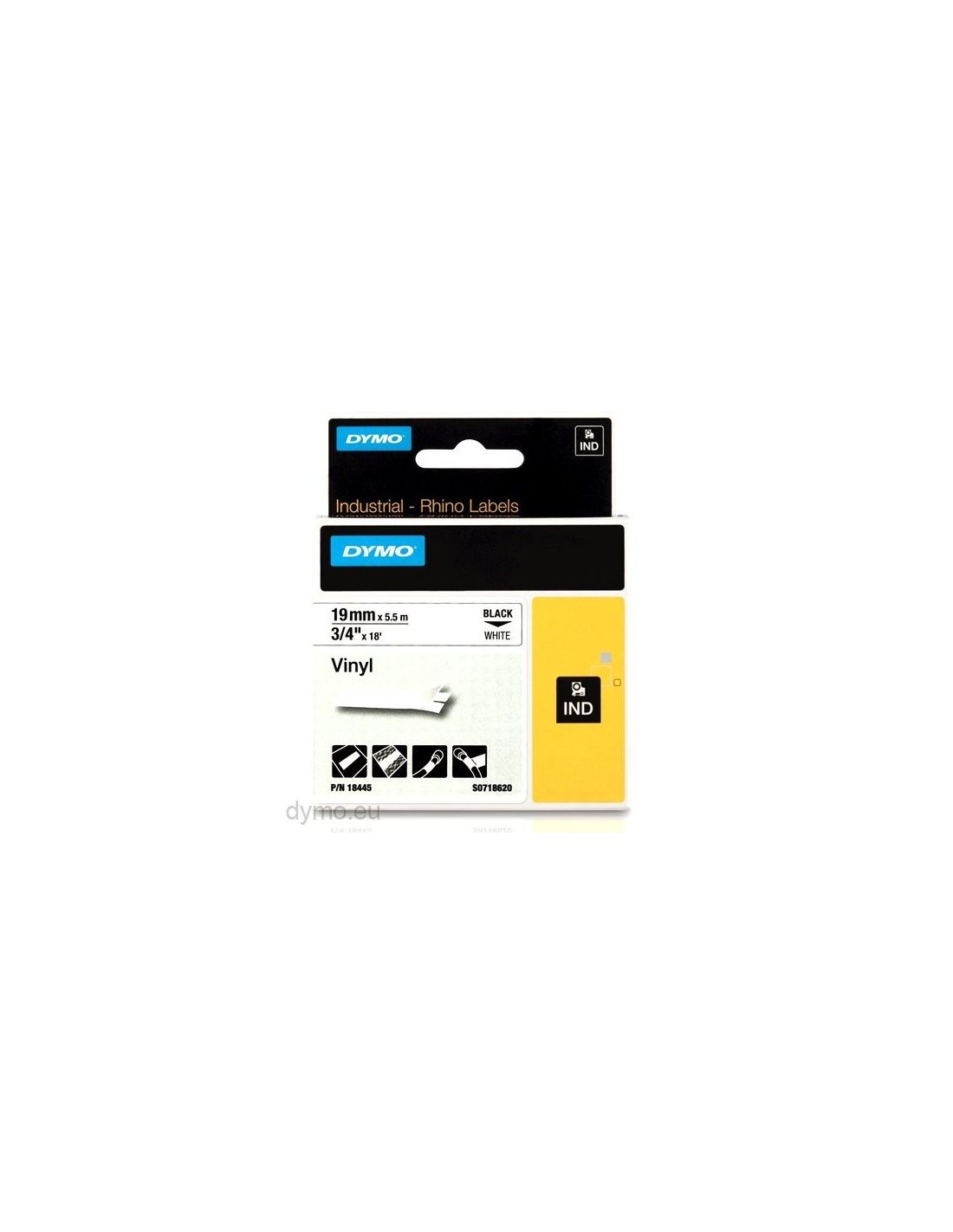 14 días de devoluciónDymo RHINO 18445 vinilo negro sobre blanco 19mm