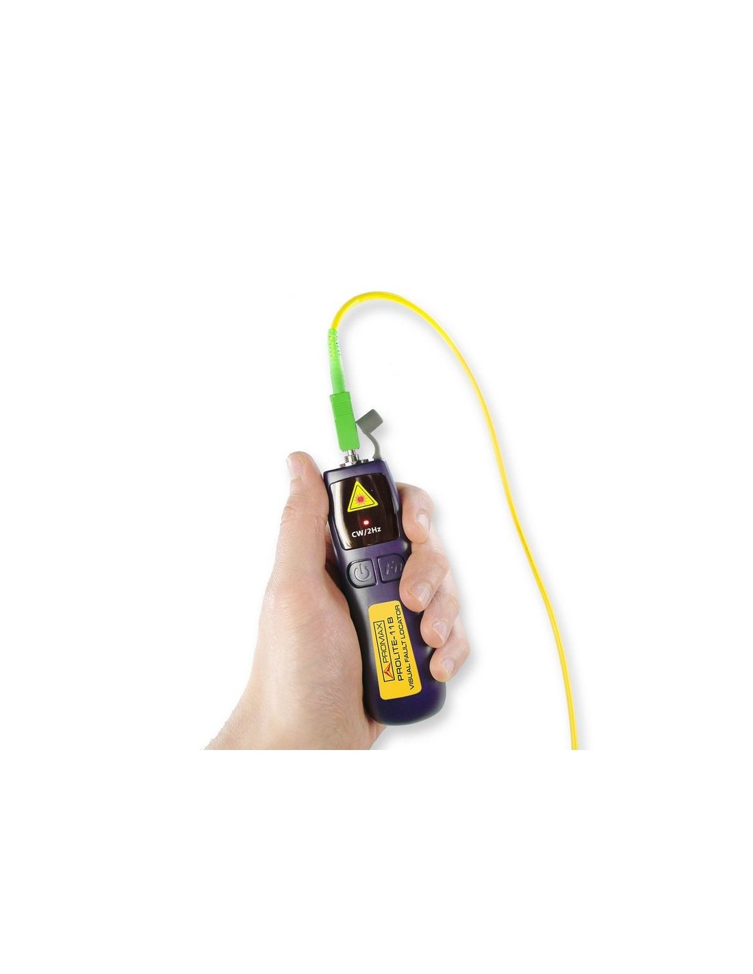 El localizador visual de fallos modelo PROLITE-11B es una fuente de luz utilizada para localizar roturas, fusiones mecánicas de baja calidad y conectores dañados en cables de fibra óptica.