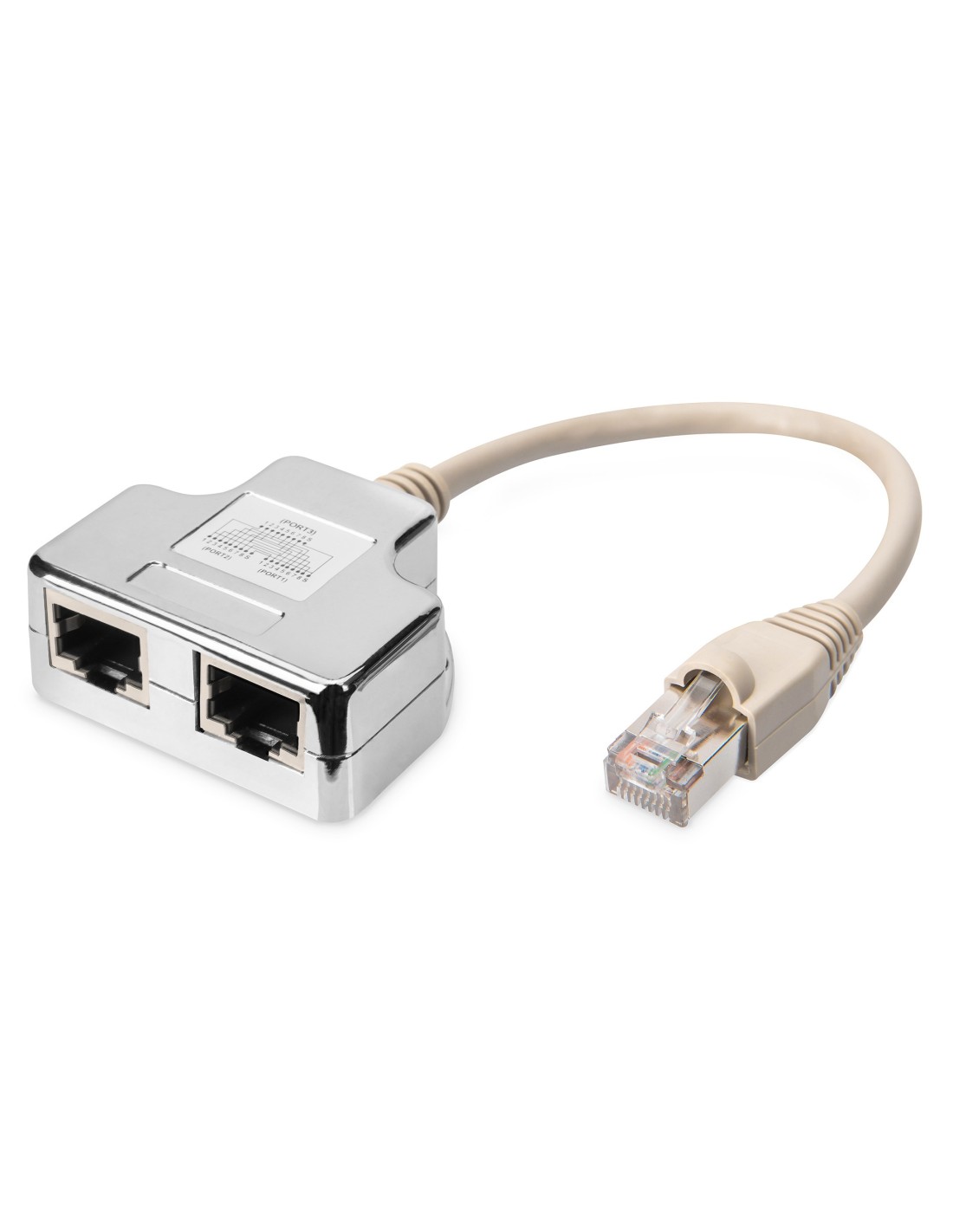 Los adaptadores apantallados del cable de conexión 5e Cat de DIGITUS® tienen dos conectores hembra RJ45 y un conector macho RJ45. Disponible con la configuración 1-1.