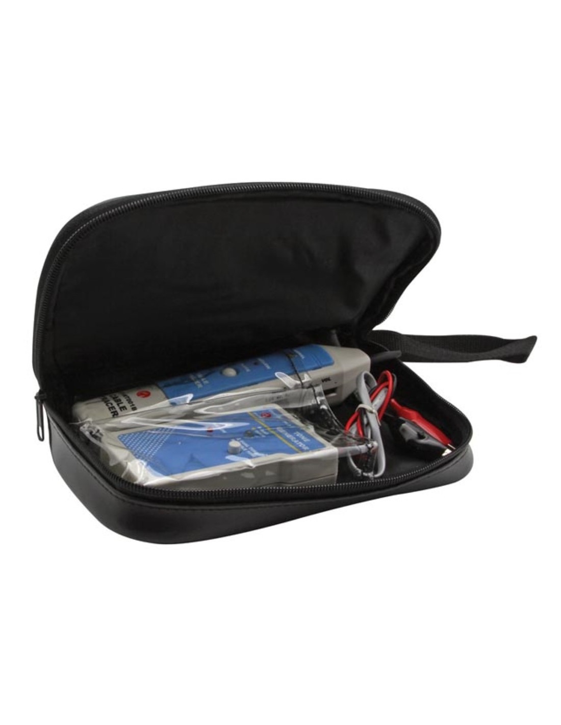 Con esta práctica herramienta, puede ubicar rápida y fácilmente los cortocircuitos, los circuitos abiertos, los cables rotos, las fugas de energía e incluso los cables. ¿Cómo funciona? ¡Simple! Conecte el generador de tono al cable y use la sonda de medición para detectar la ruptura del cable. Una vez que se encuentra la rotura del cable, la señal audible se detiene para que pueda repararla rápidamente, sin abrir la capa de aislamiento del cable. Este probador de cable se puede usar para probar diferentes tipos de cables, que incluyen: