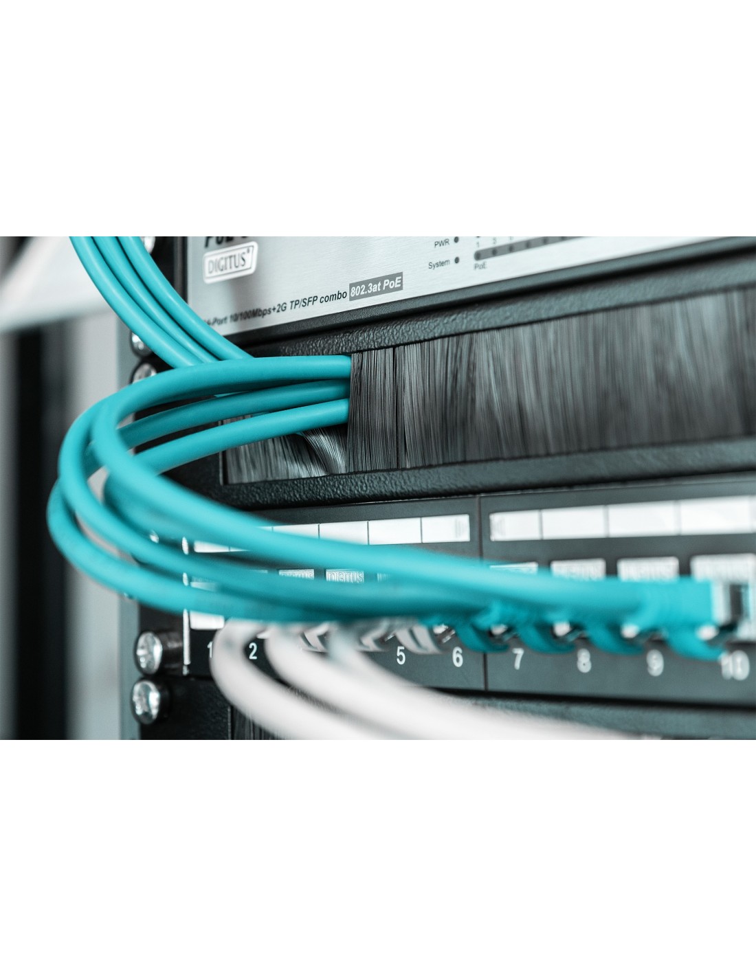Los cepillos para cables 1U se fijan a los carriles perfilados de 483 mm (19"). Los cepillos integrados protegen los cables de los daños. Por tanto, pueden colocarse con especial facilidad en la parte trasera o lateral del armario para optimizar la gestión de cables en su armario para redes o servidores.